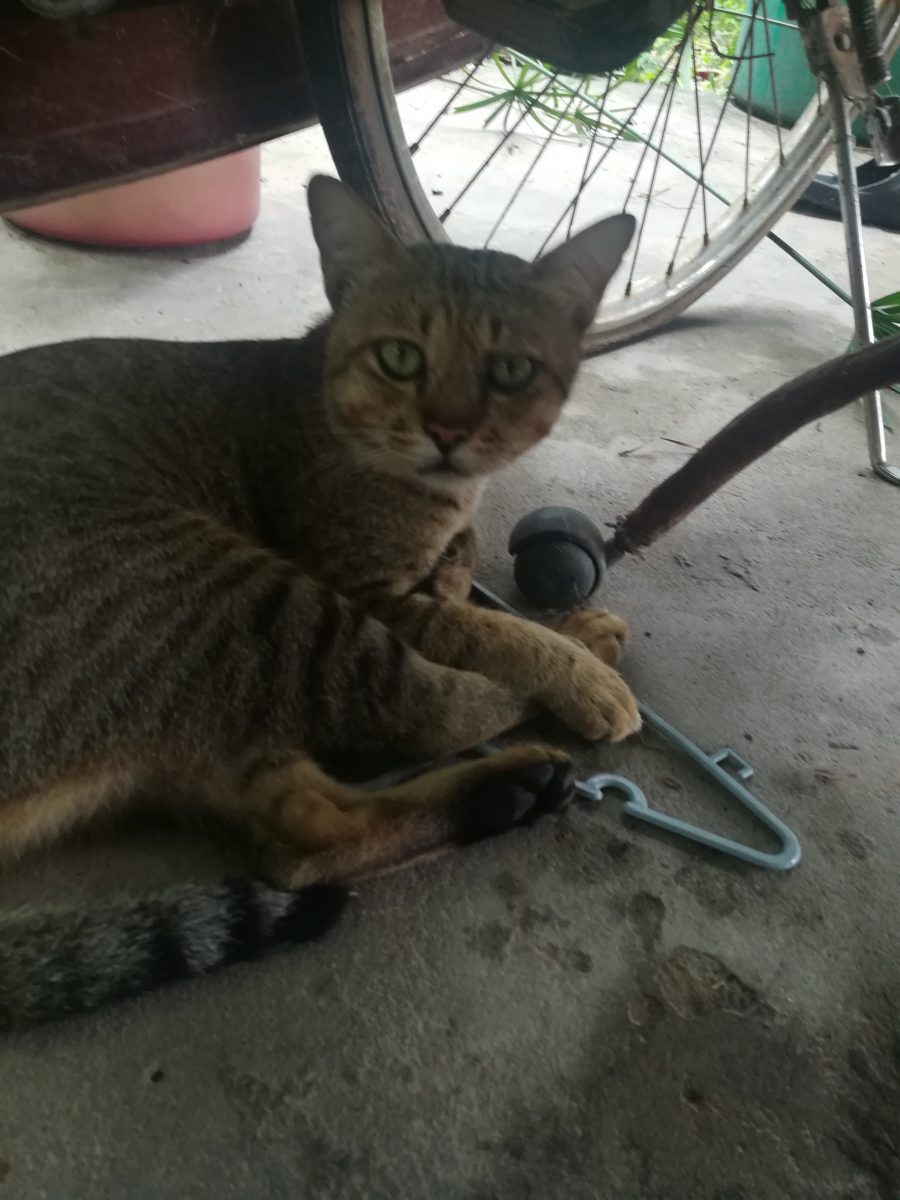 タイの実家では、時々餌を与えているからか、一匹のおニャン子が居付いていました。