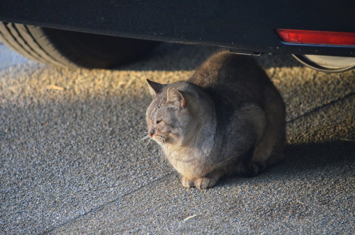 すぐ近くに人家はなく、また首里城が飼っているとは思えないので、野良のおニャン子のようです。