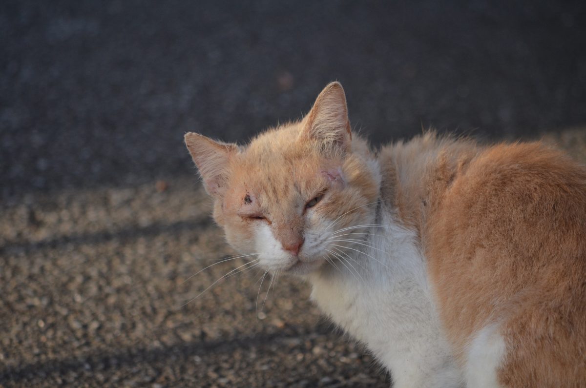 崎山ハイツのおニャン子を探しに、朝8時半頃散歩してみると、数匹のおニャン子に遭遇しました。