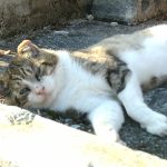 崎山ハイツ内のある民家の門柱の上で寝そべっているおニャン子を見つけました。 カメラを回しながらゆっくり近づいていくと、顔の近くまで来た...