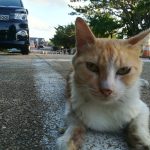 首里城公園に出入りする業者のための駐車スペースがあるところで、餌をもらうおニャン子たちを探しに行きました。 道路に駐車している車の下に...