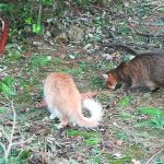 2月27日火曜日、18時過ぎ、娘のお稽古ごとを終え、首里城を横切る道を歩いていると、おニャン子たちが食事をしているのを発見。 よくみると、...
