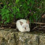 金城ダムの管理塔付近をねぐらとしている、おニャン子ファミリーの中の子猫が、壁の上に座って、こちらの方を見ているところを見つけました。 ...