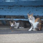 八重瀬町東風平にある、東風平公民館の庭にあるベンチのそばで、くつろいでいるおニャン子たちを発見。 公民館という、人が多く出入りするところに...