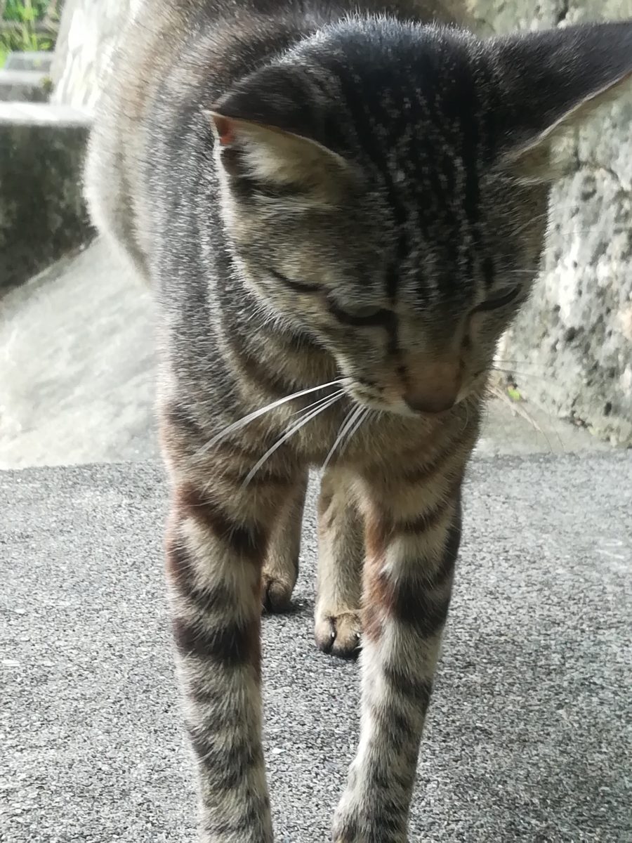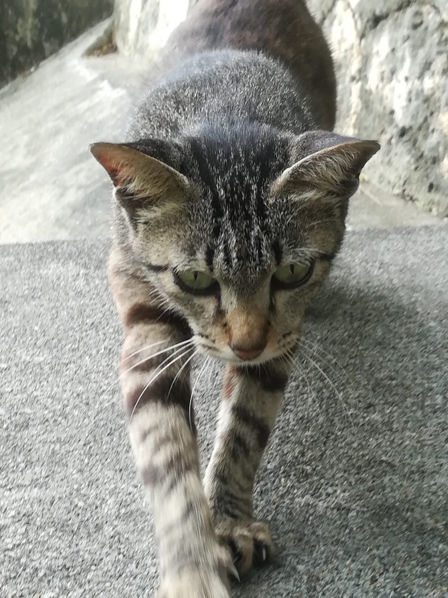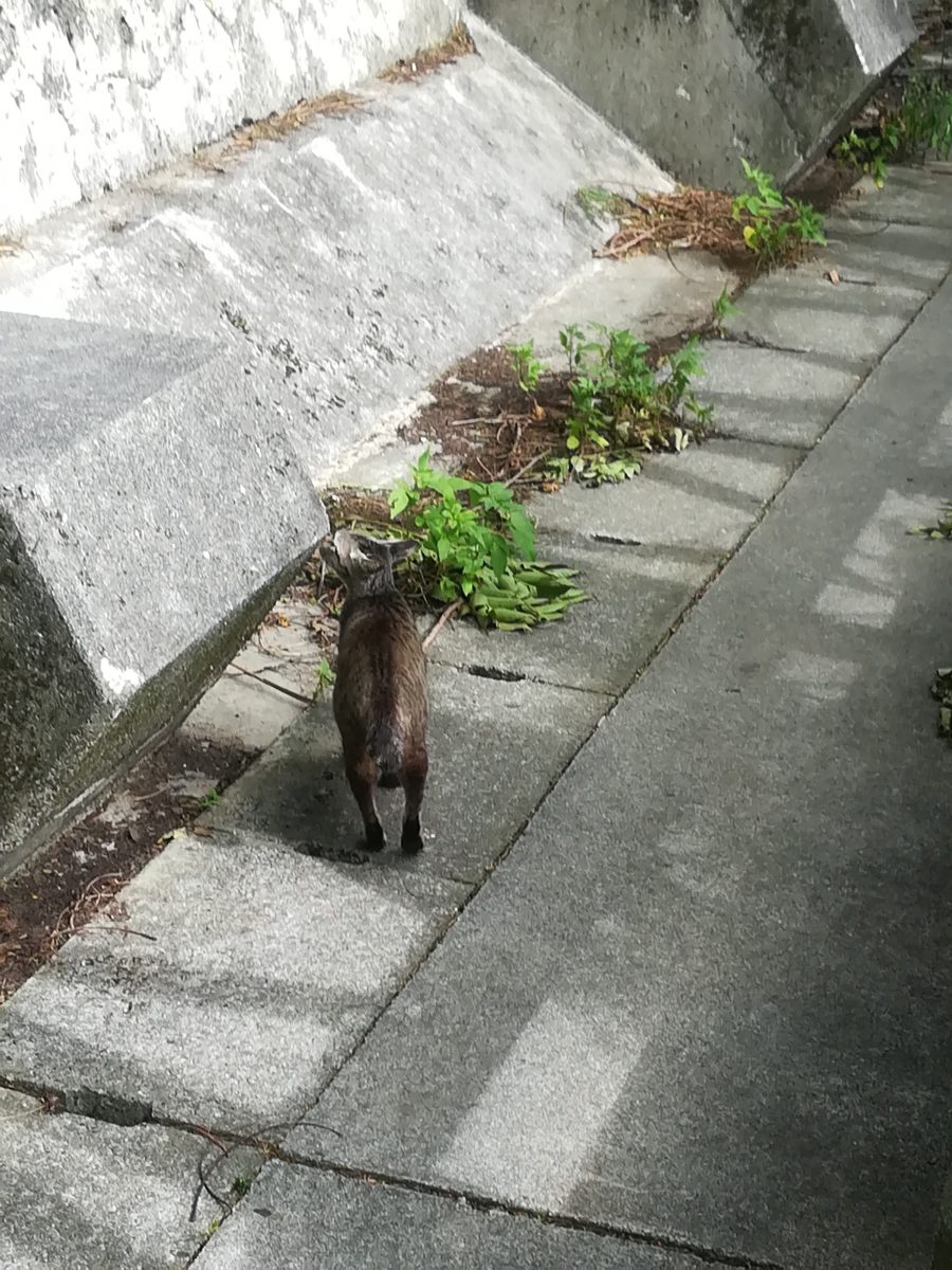 金城ダムで子育てをするおニャン子 2018/7/11 2018/7/14 金城ダムのおニャン子 金城ダムの入り口から、管理棟ヘ直進し、突き当たったところに、大きなバルブの展示がされています。 そのバルブの周辺で、子育てをしながら生息するおニャン子です。 子猫より一回りくらい大きいくらいの小柄な母親のおニャン子です。写真はまだ撮影できておりませんが、子猫が2匹、とお父さん猫を目撃したことがあります。 目撃場所