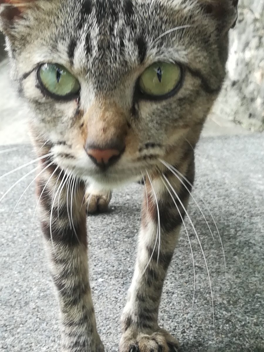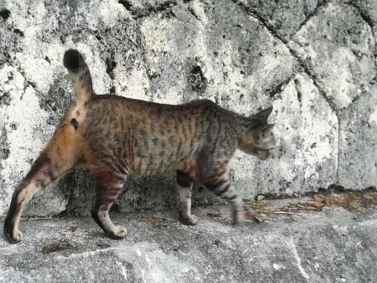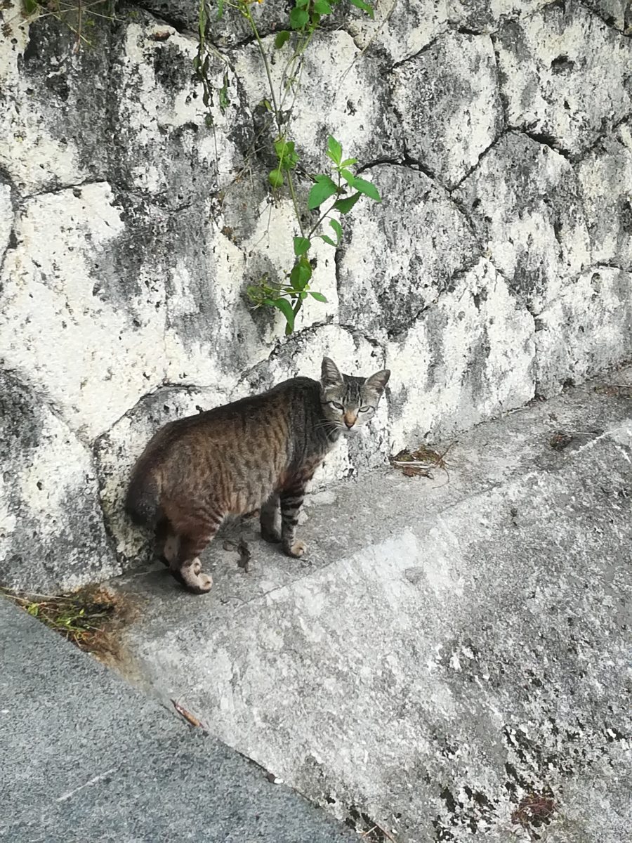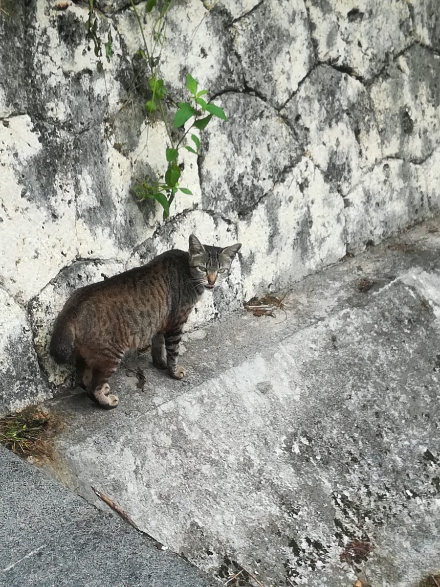 金城ダムで子育てをするおニャン子 2018/7/11 2018/7/14 金城ダムのおニャン子 金城ダムの入り口から、管理棟ヘ直進し、突き当たったところに、大きなバルブの展示がされています。 そのバルブの周辺で、子育てをしながら生息するおニャン子です。 子猫より一回りくらい大きいくらいの小柄な母親のおニャン子です。写真はまだ撮影できておりませんが、子猫が2匹、とお父さん猫を目撃したことがあります。 目撃場所