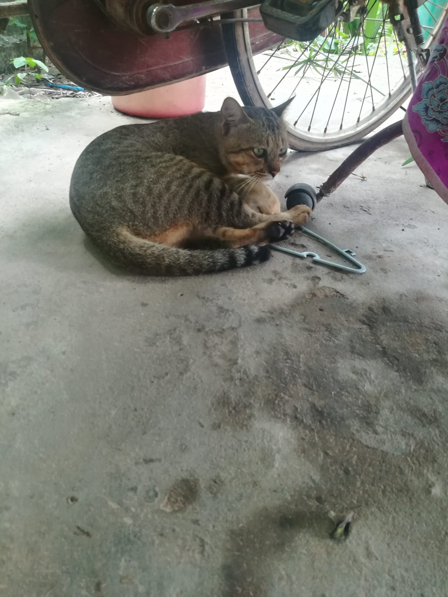 タイの実家では、時々餌を与えているからか、一匹のおニャン子が居付いていました。