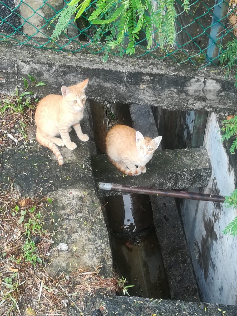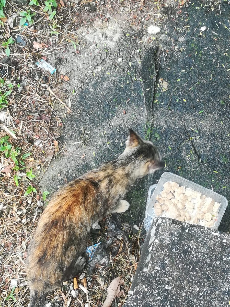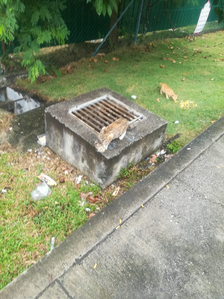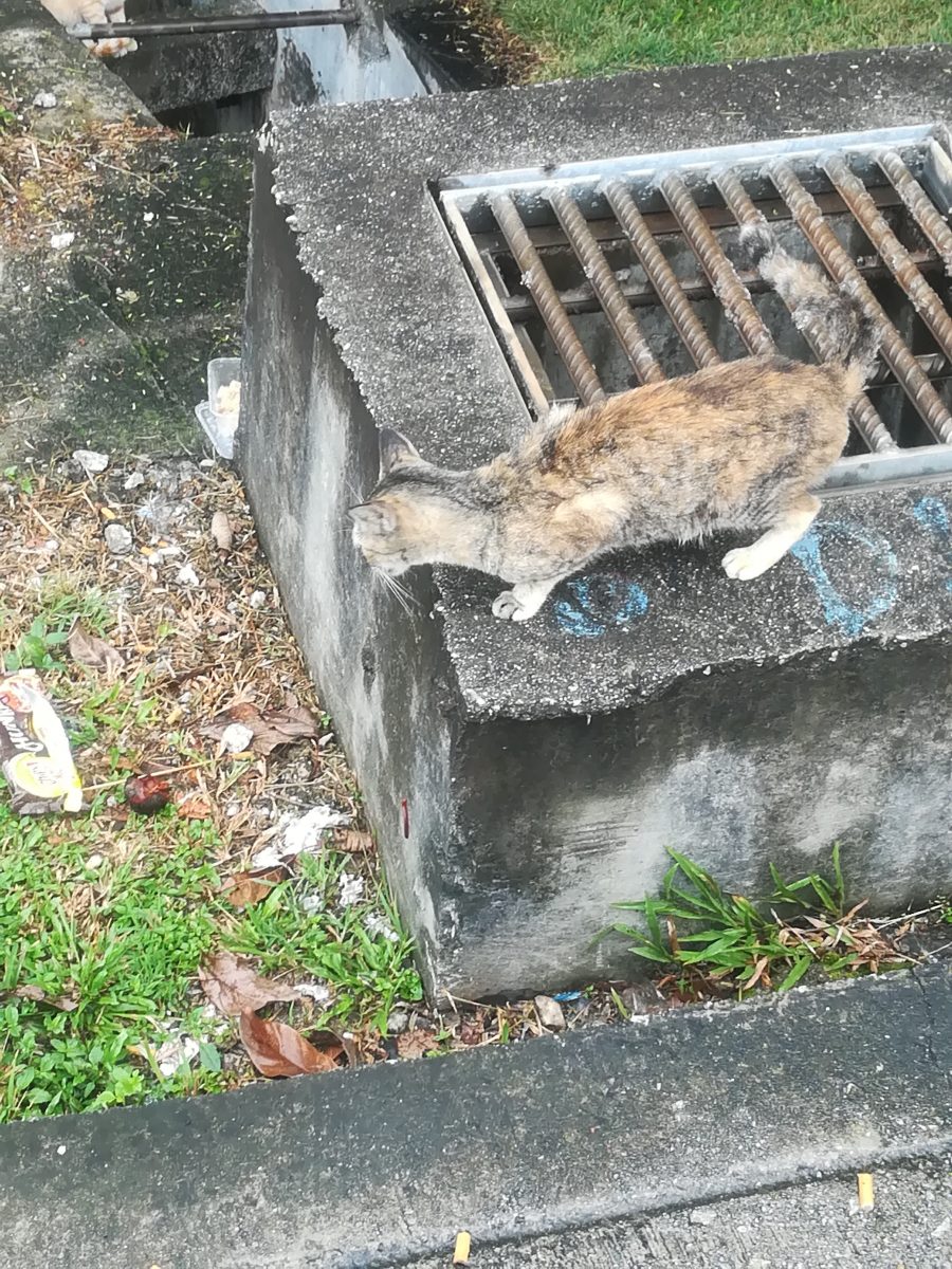 クアラルンプール市内のおニャン子 2018/8/8 2018/10/16 マレーシア・クアラルンプール クアラルンプール市内、警察署のような保安事務所の向かいの空き地で、餌をもらいながら生活しているおニャン子が数匹いました。