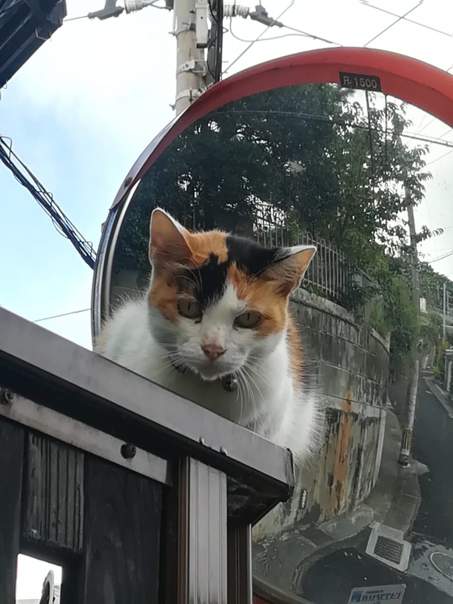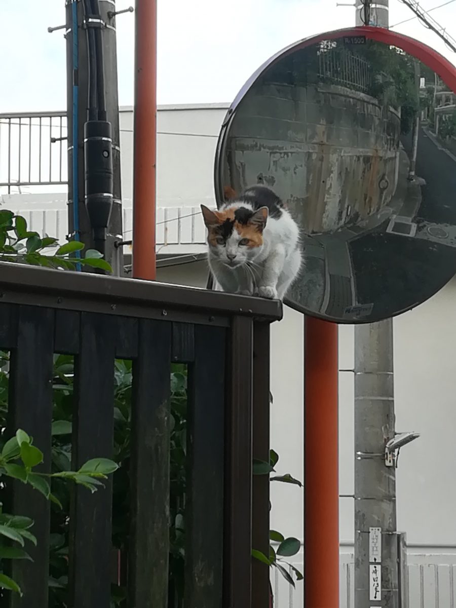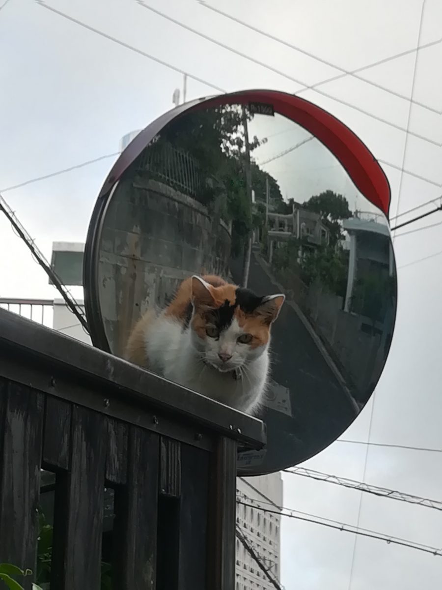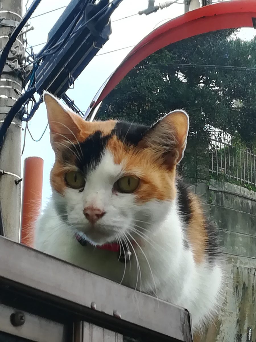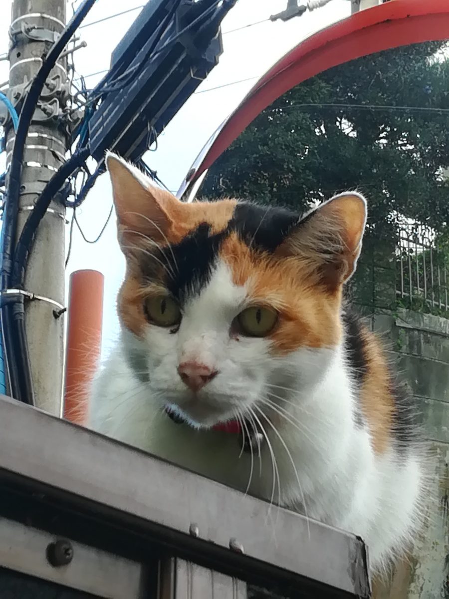 高いところから見下ろすおニャン子 2018/8/23 2018/10/22 崎山ハイツのおニャン子 高いところにいれば安全というのをよく知っているおニャン子。 普通の人間なら手が届かない事を知っているようで、近寄っていっても、逃げないおニャン子。 鈴をつけているので、飼い猫のようです。