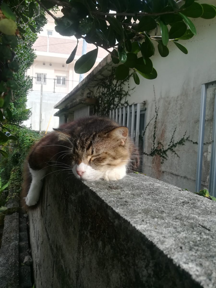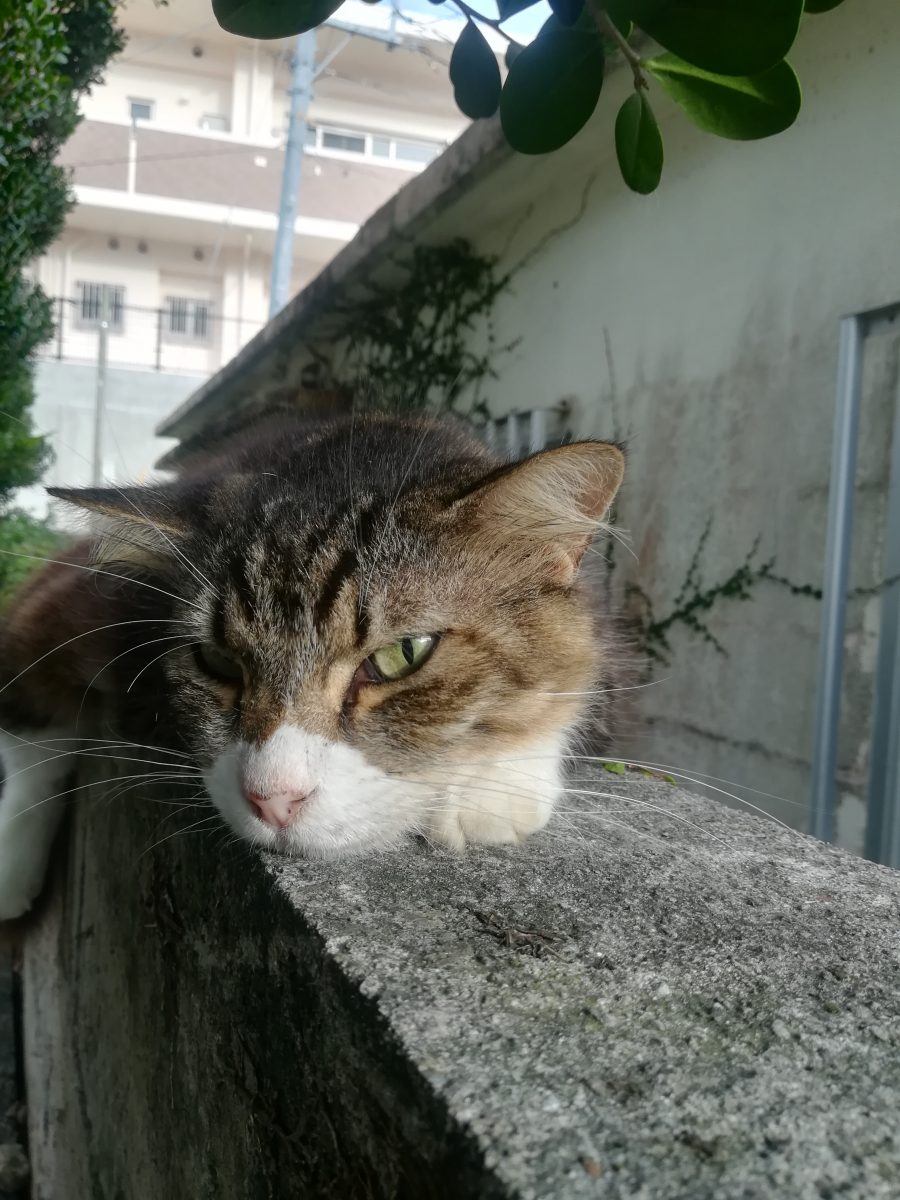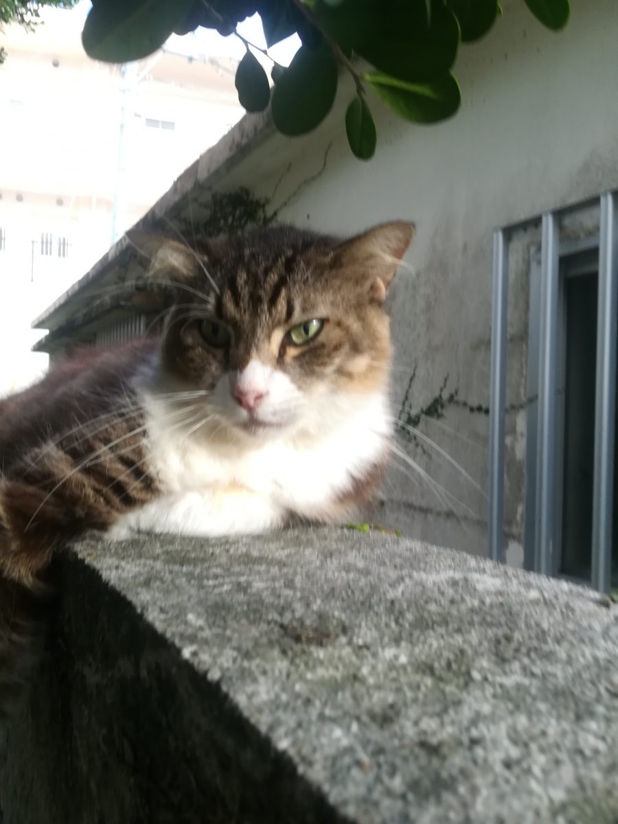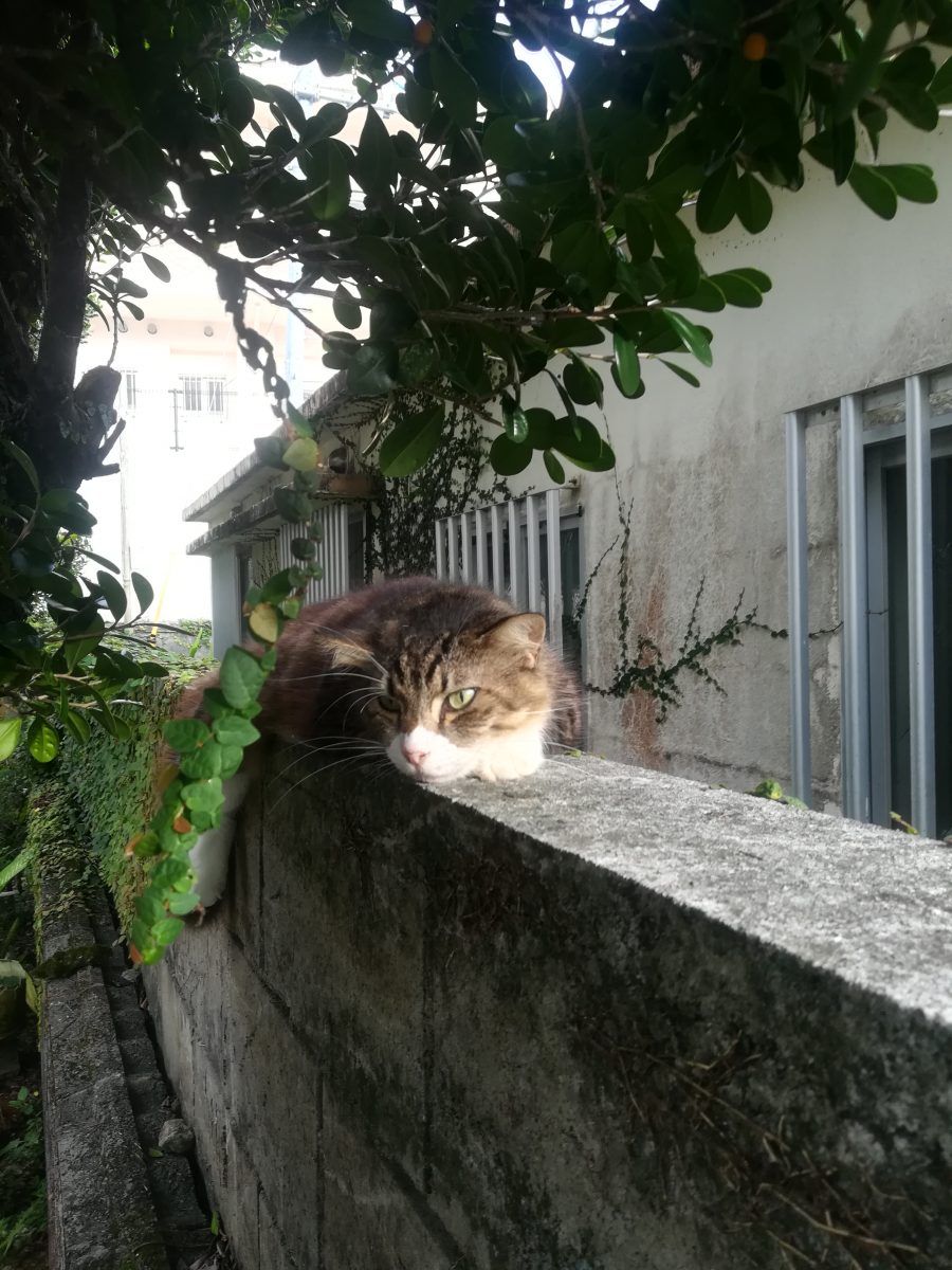 塀の上がお気に入り 2018/8/22 2018/10/22 上江洲そろばん塾のおニャン子 上江洲そろばん塾の庭で、このおニャン子を見るときは、いつも、この塀の上だ。 ここが、こいつのお気に入りの場所なのかもしれません。 このおニャン子、気が強いのか、近寄っていっても逃げません。 近寄りすぎると、「シャー」と、言って威嚇してきます。 また、あたまをなでようとすると、猫パンチが飛んできそうで、怖いです。