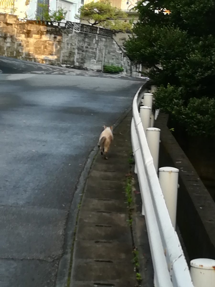 おニャン子空白地帯にいた、見かけないおニャン子 2018/9/1 2018/10/22 崎山ハイツのおニャン子 家の近くでは、おニャン子がおらず、おニャン子空白地帯になっているのですが、空き家になっている家の玄関のところで、見慣れない、毛並みの良いおニャン子を見つけました。 近寄ってゆくと、隣の家の庭に入っていってしまいました。