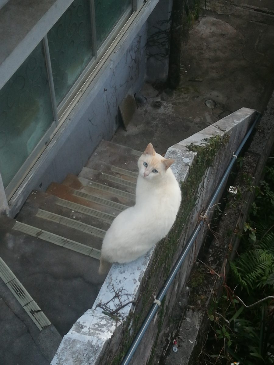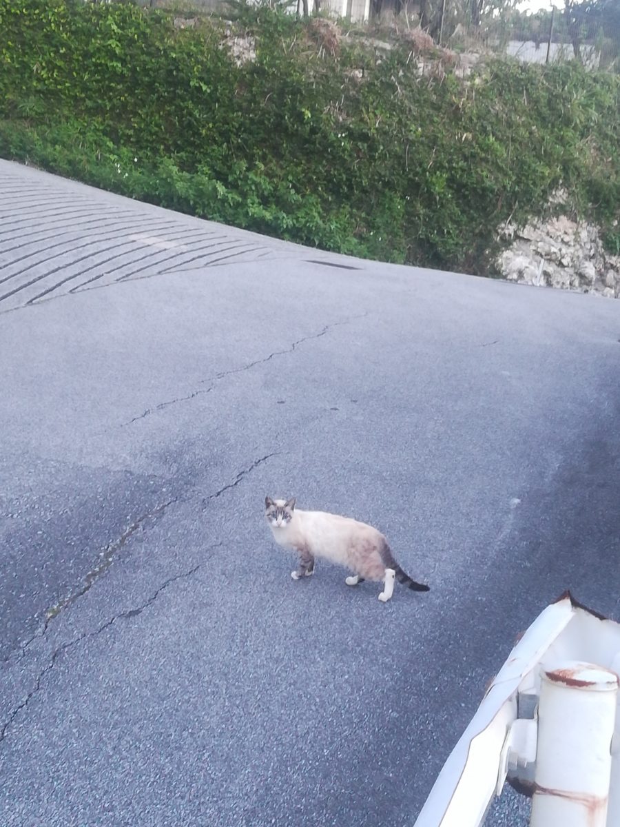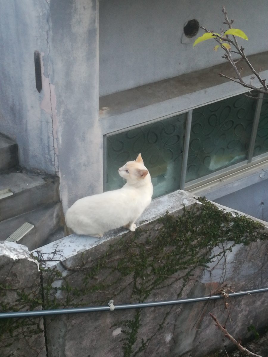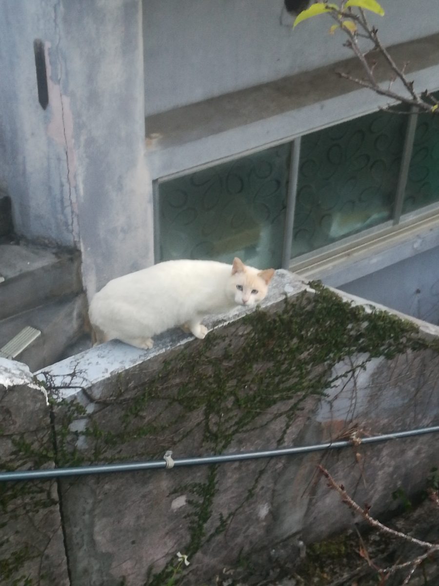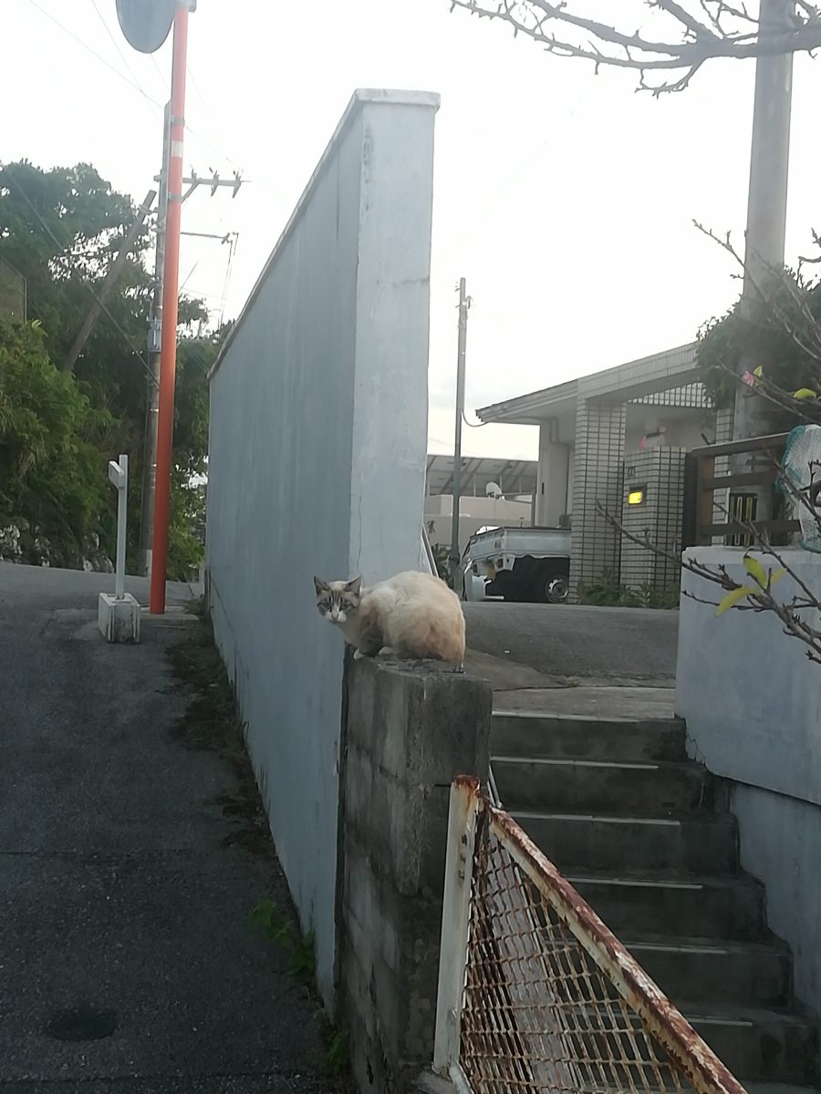 夕方、散歩に出かけると、Aさん宅の壁の上にシャム猫系のおニャン子を見つけました。
