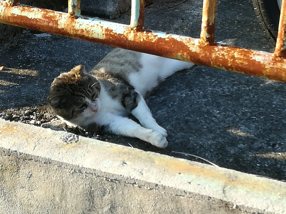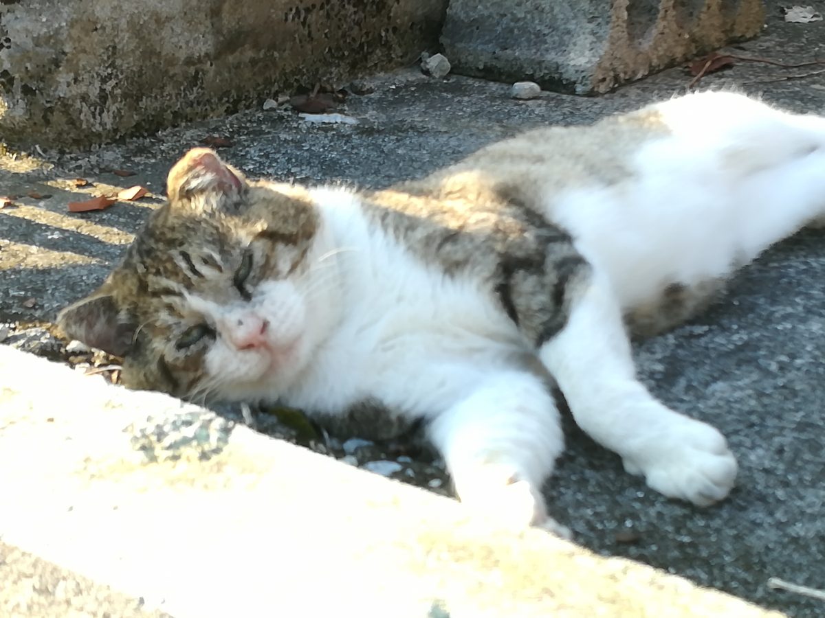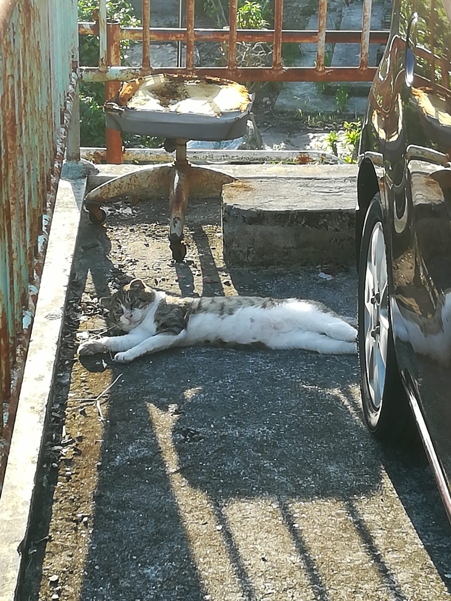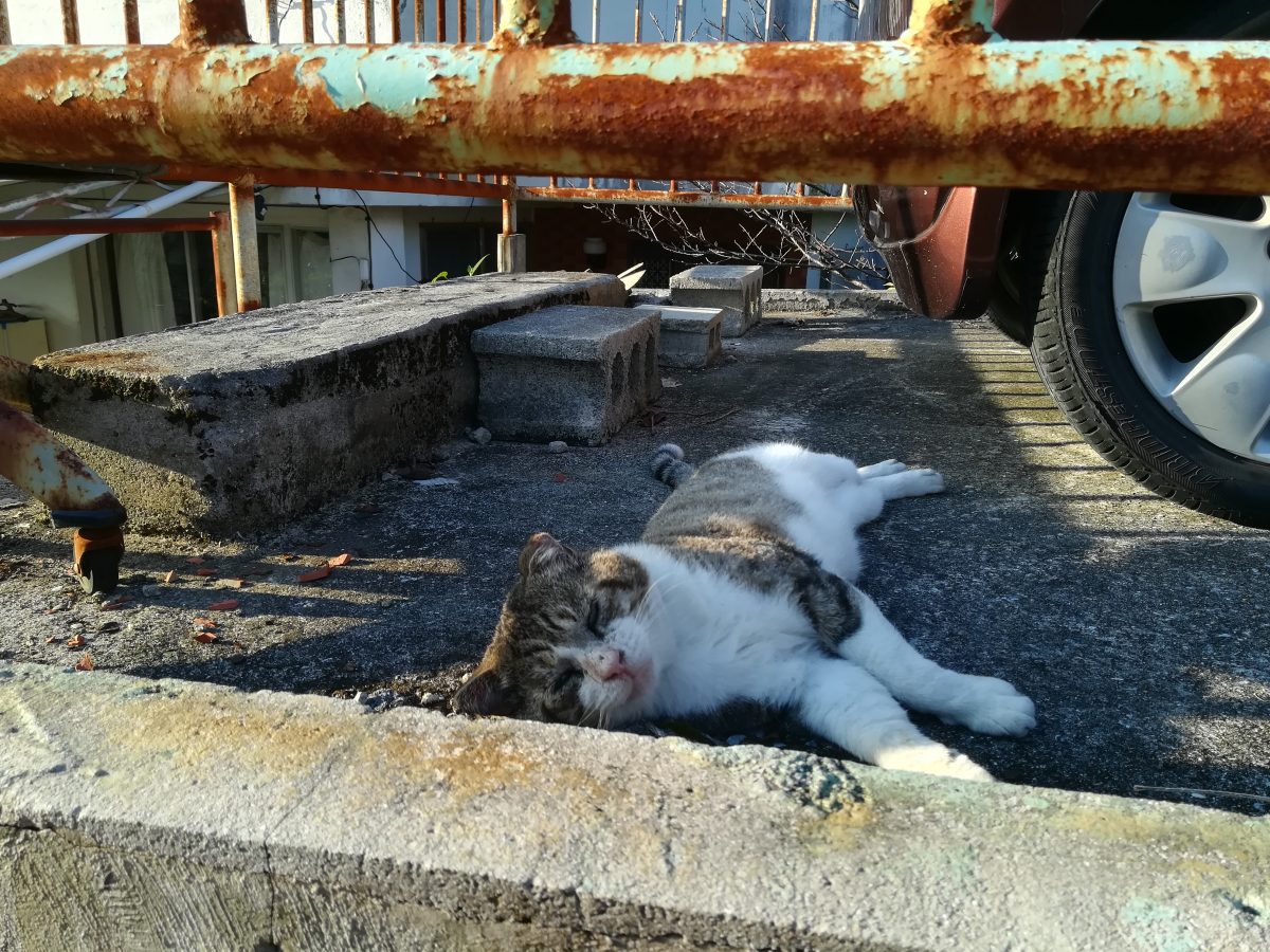 車の横でお昼寝中のおニャン子 2018/11/11 2018/11/12 崎山ハイツのおニャン子 お昼寝中の強面おニャン子に会いました。 近寄ってゆくと、こちらの気配を察したのか、しっぽをふりふり喜んでいたようでした?