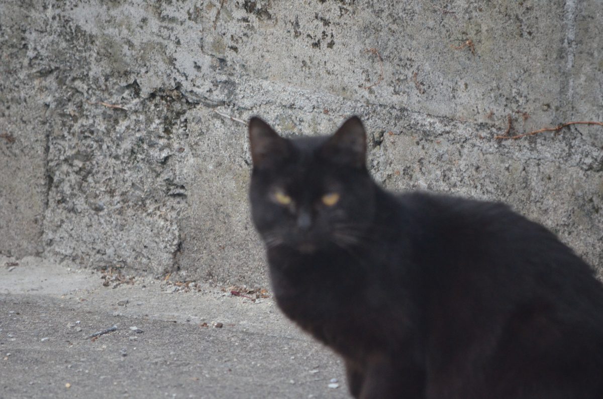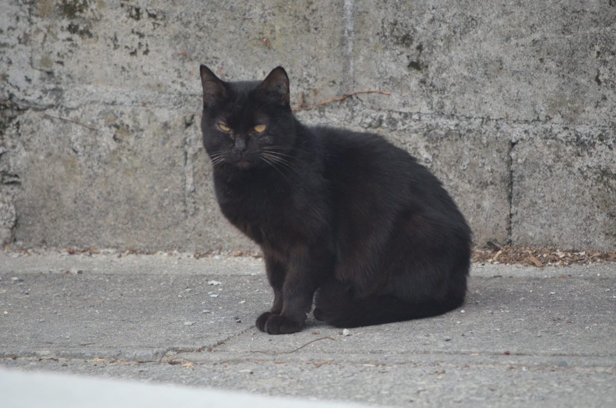 那覇市織名で出会った黒いおニャン子 2020/1/11 那覇市 織名の小道を歩いていると、人家の駐車場にいた黒いおニャン子を発見。 写真を撮りながら近づいていくと、逃げようか、どうしようか考えている様子でした。