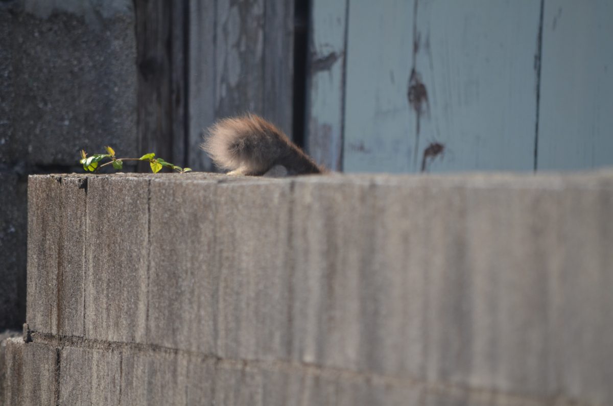 ポカポカ日和のお昼。塀の上でくつろいでいるおニャン子発見。 近づくと逃げていきました。