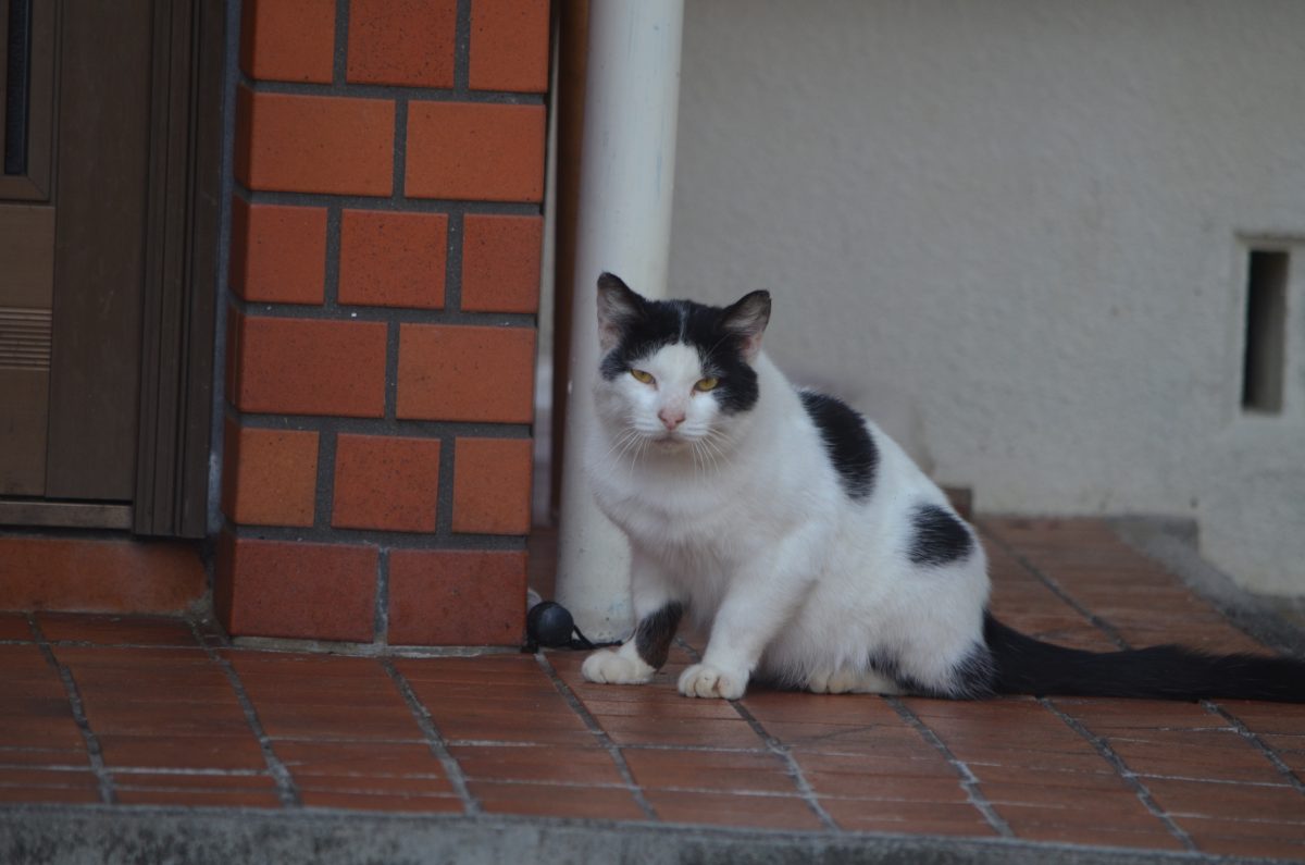 とある民家の玄関前で、ポカポカ日和のお昼に、たむろしているオニャン子達3匹を見つけてぱちり