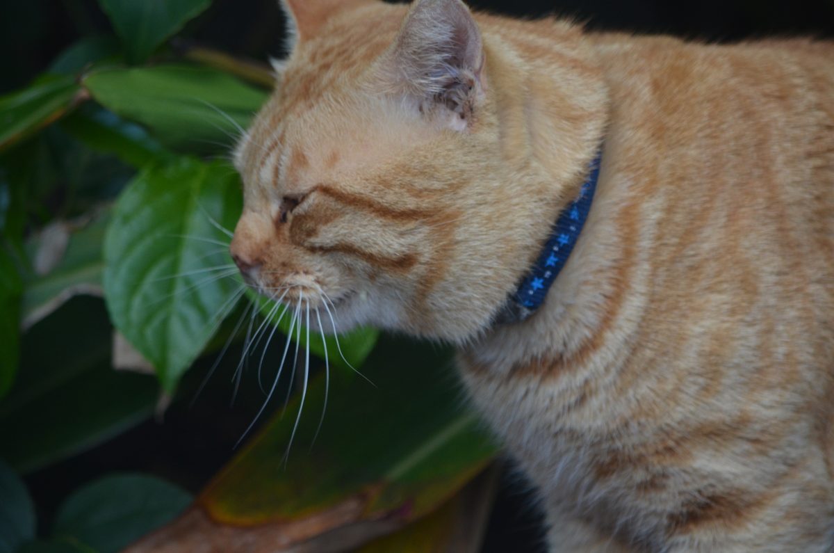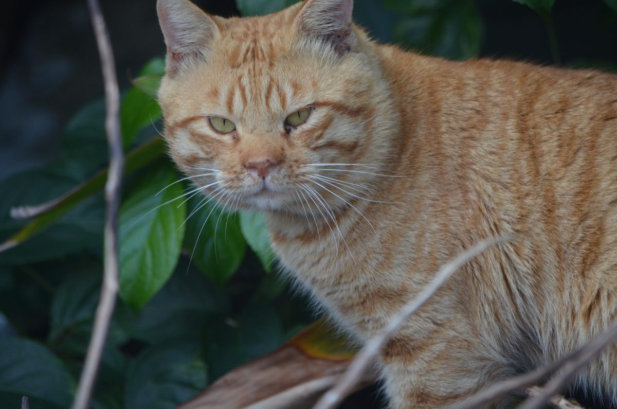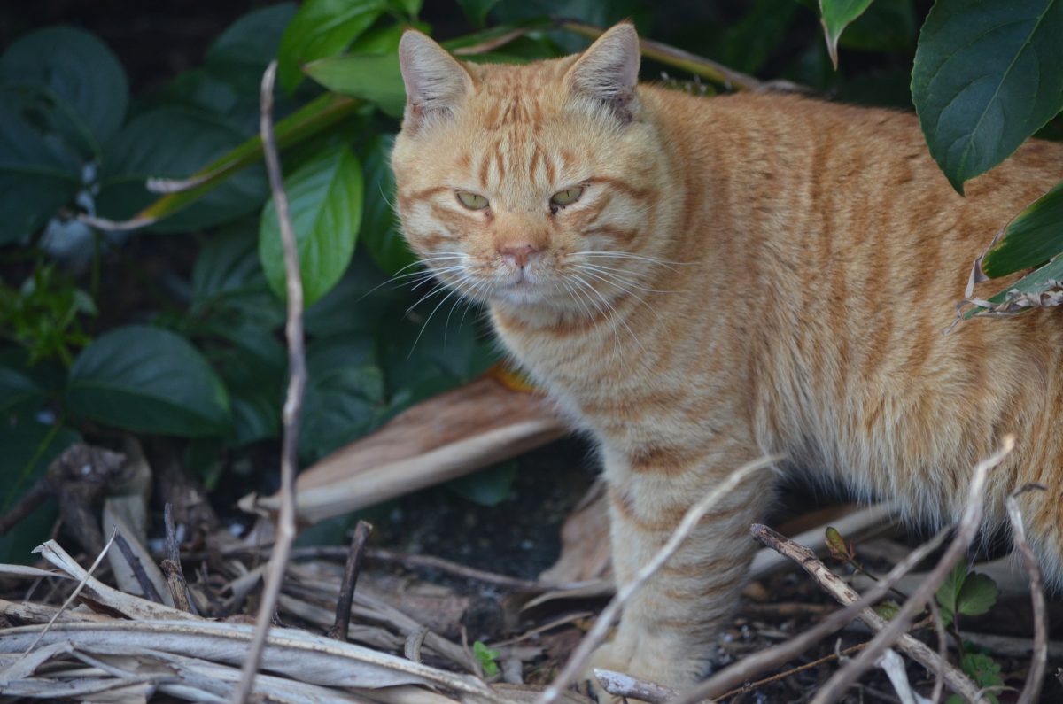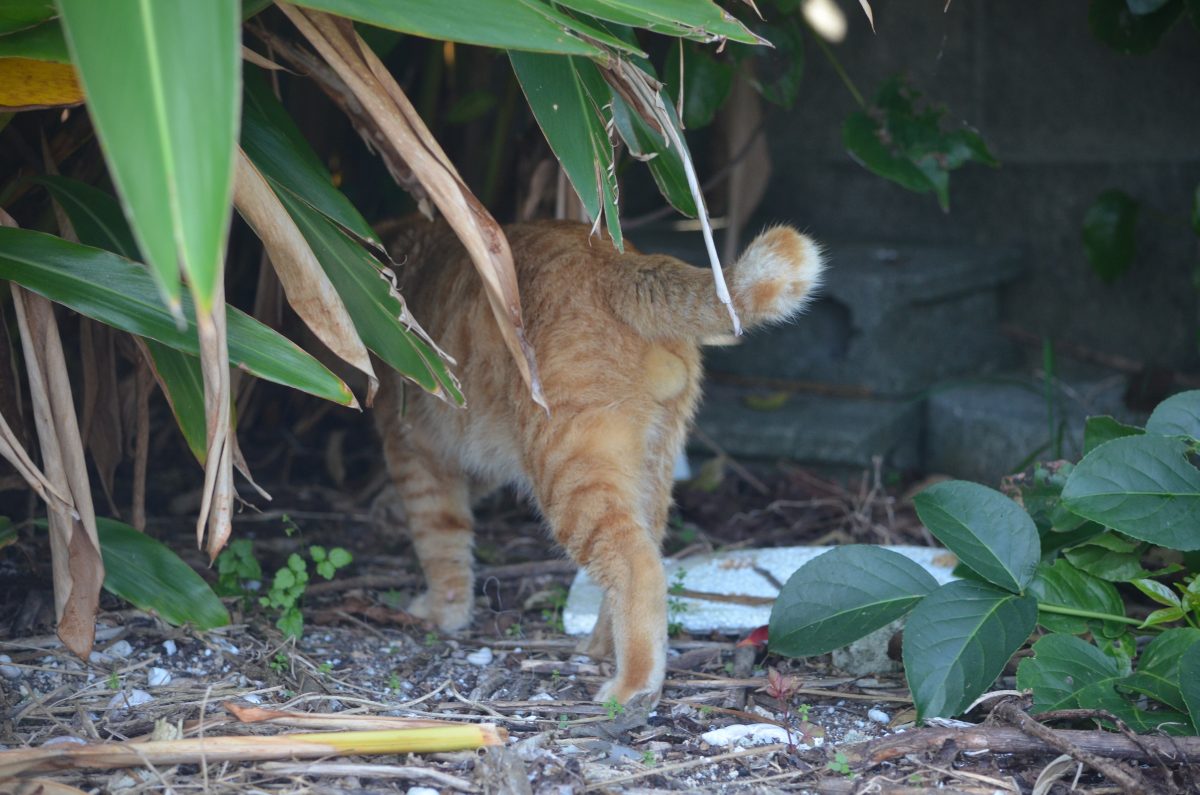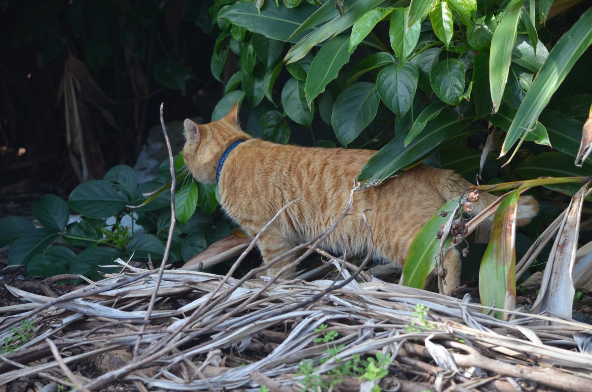 藪の中をお散歩中のおニャン子@糸満市真栄里 2020/1/26 糸満市 真栄里集落の中、民家と民家の間の空き地が藪になっているところをお散歩中のおニャン子発見。 「ニャ~オ」と、挨拶すると、「にゃ~お」と返事。 よく見ると首に首輪があり、飼い猫のようだ。 撮影が終わると、藪の奥に進んでいった。