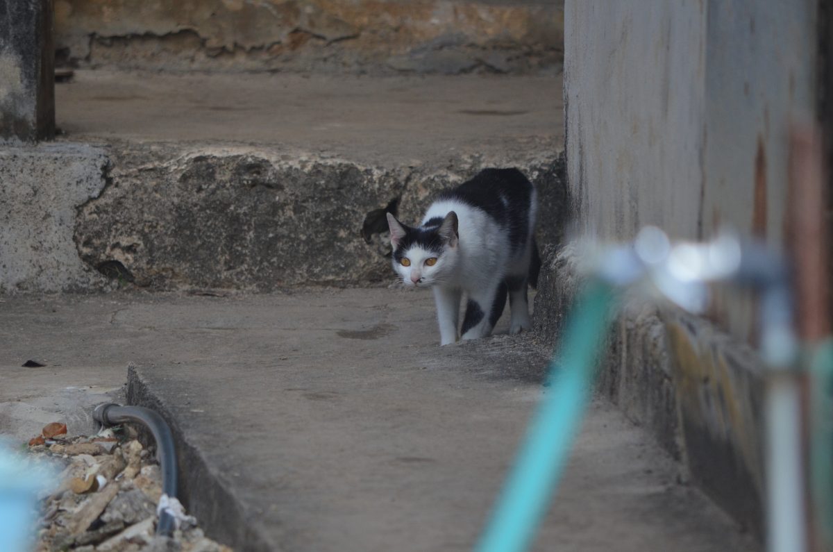 民家の壁際で匂いをかぐおニャン子@糸満市名城 2020/1/26 糸満市 糸満市、名城の集落をうろうろしていたら、民家の壁際でおニャン子発見。 私に気がついたようで、こちらを見て、警戒したようだが、私が無視したところ、警戒心をといて、なにか匂いを嗅いでいる。 そして、民家の壁の奥に消えていった。