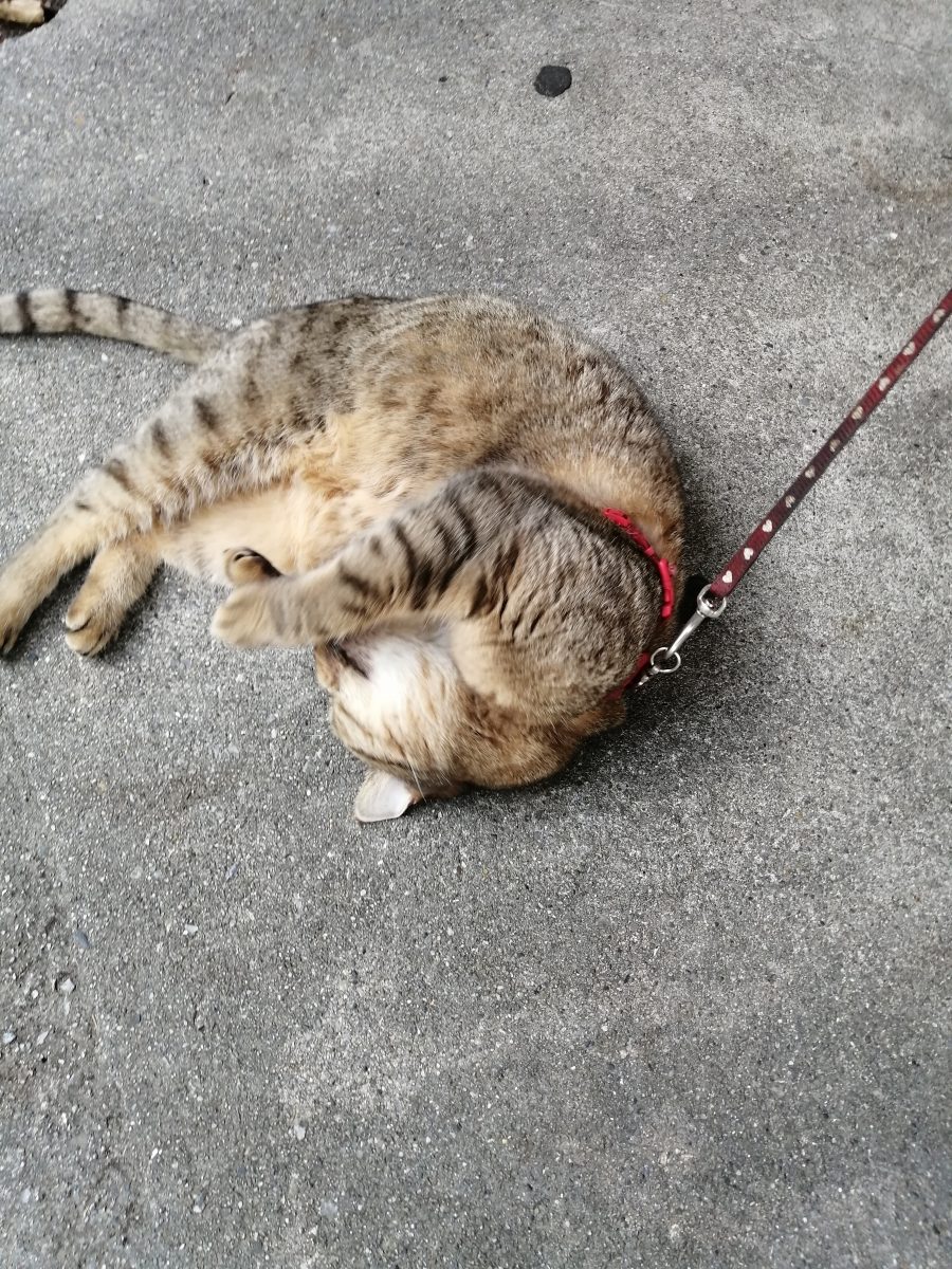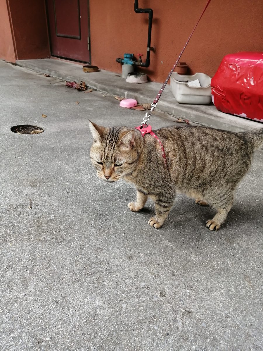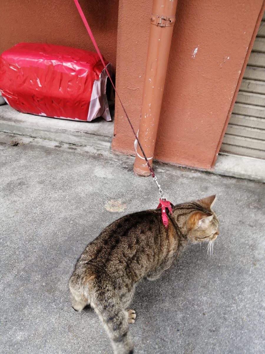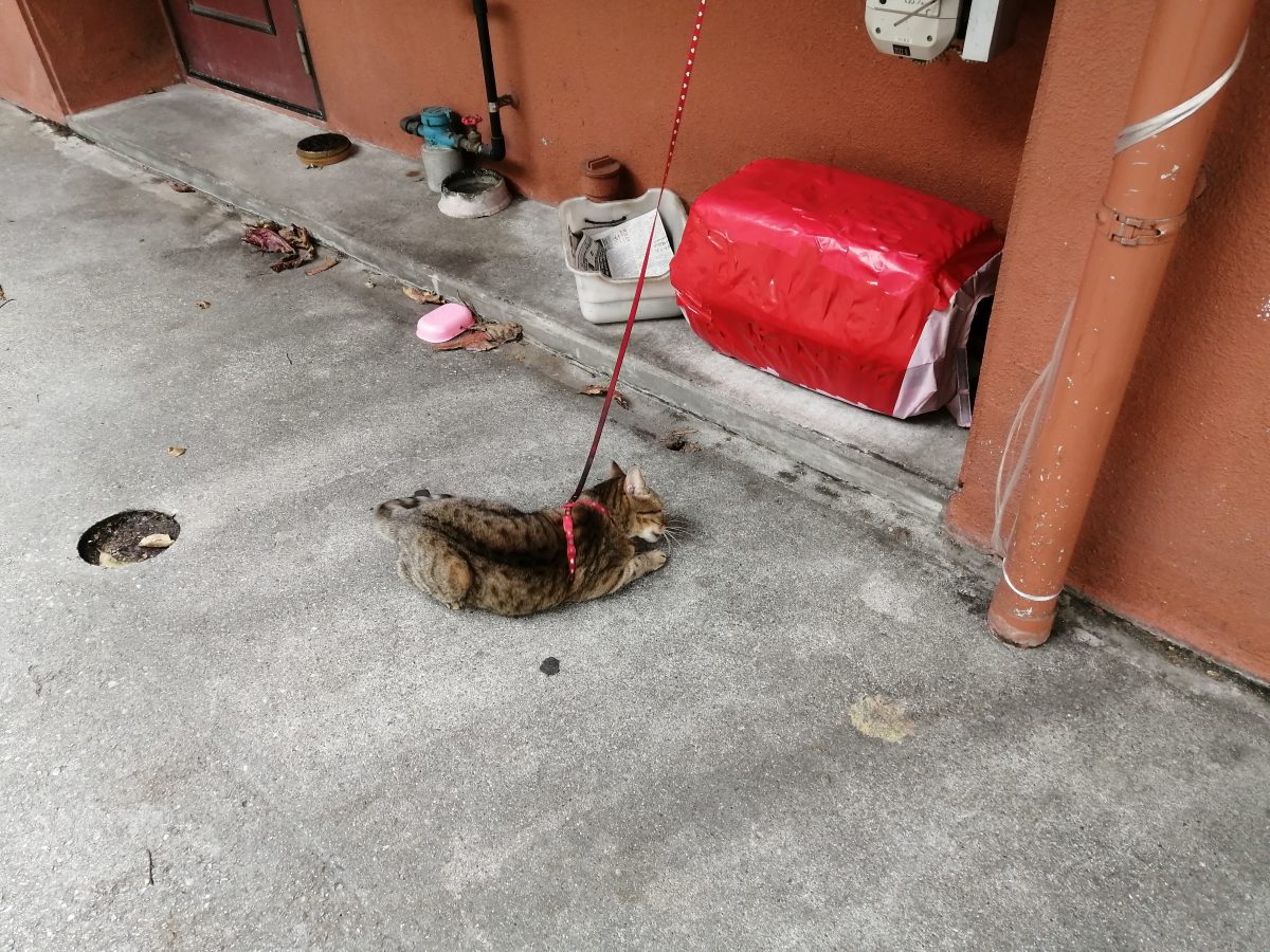 リードに繋がれていたおニャン子@那覇市上間 2020/1/27 那覇市 那覇市上間の車がしばしば通る小道のアパートの駐車スペースに、リードで繋がれているおニャン子を発見。 あまり人が通らない道で、おニャン子も寂しかったのか、飼い主でもないのに、すごく喜んでくれた。