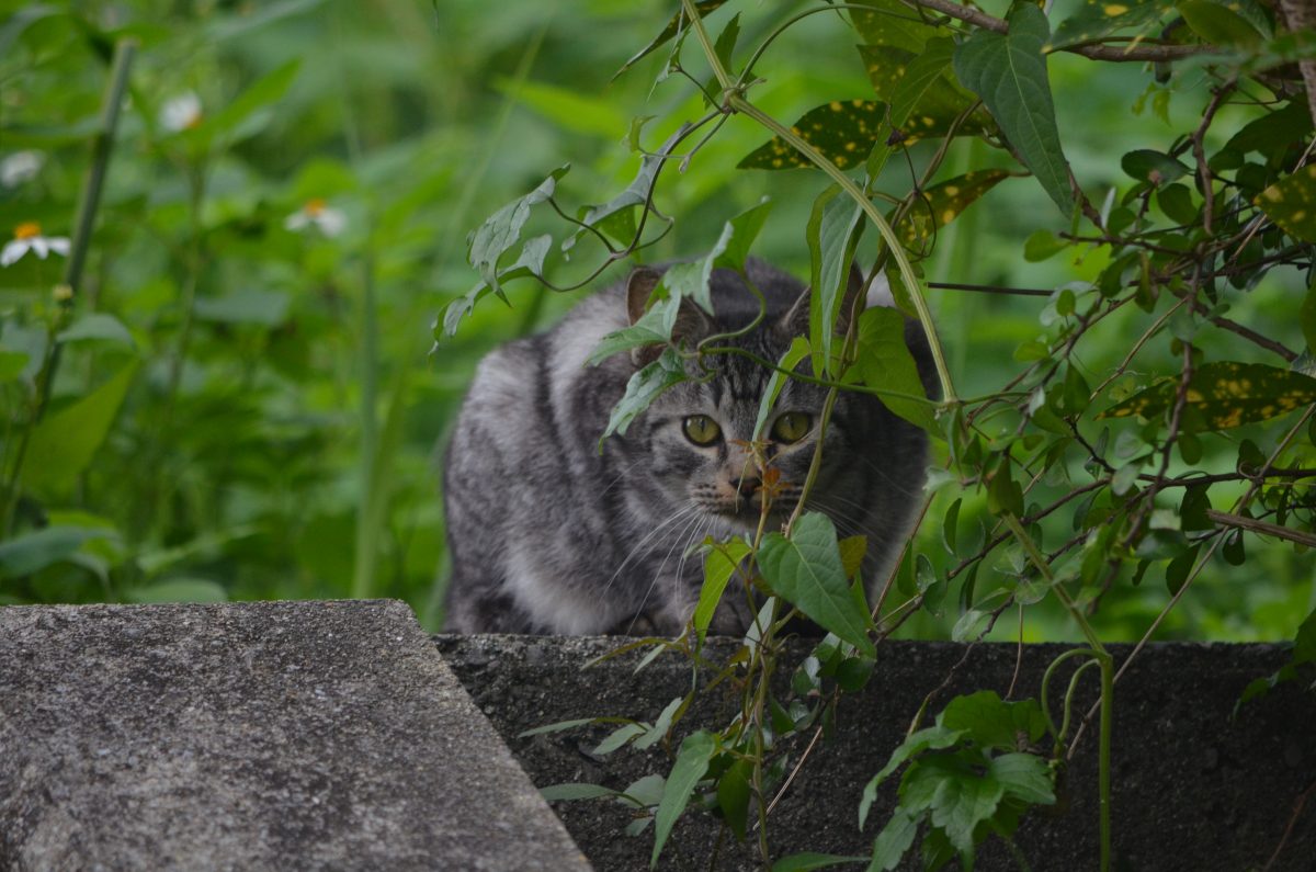草むらからじっとこっちの様子を見ていたおニャン子@西原町小波津 2020/1/28 西原町 西原町小波津の小波津団地の中にある、小波津児童公園の階段の上、草が茂っているところにおニャン子を二匹発見。 「ニャ~オ」と、遠くからあいさつすると、草の陰に隠れて、しばらくこちらの様子を観察していた。 私が階段をのぼり始めると、すっ飛んで逃げていった。