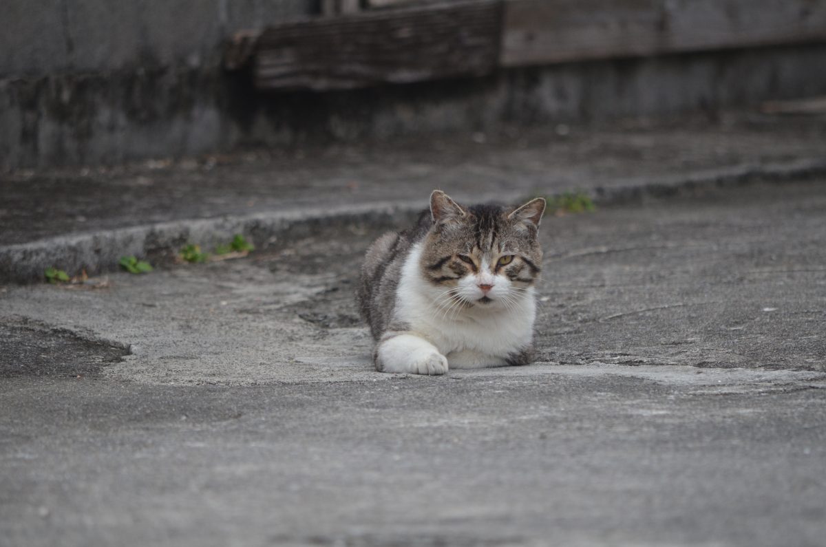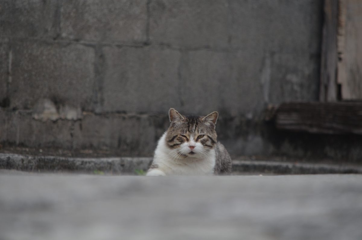 民家の庭先でこちらを見つめるおニャン子@西原町小波津 2020/1/28 西原町 西原町小波津の集落をぶらぶらしていると、コンクリートが敷き詰められた庭先で、こちらの様子を見ているおニャン子を発見。 私が近づいていくことができないのを知っているのか、こちらの様子を見ているだけした。