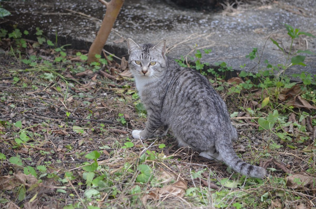 民家の裏庭でおニャン子発見@西原町小波津 2020/1/28 西原町 西原町小波津の集落、車が1台通れるかどうかの、細い路地を歩いていると、民家の裏庭のようなところでおニャン子を発見。 「ニャ~オ」と、挨拶しても特に動じず、こちらの様子を伺っているだけでした。