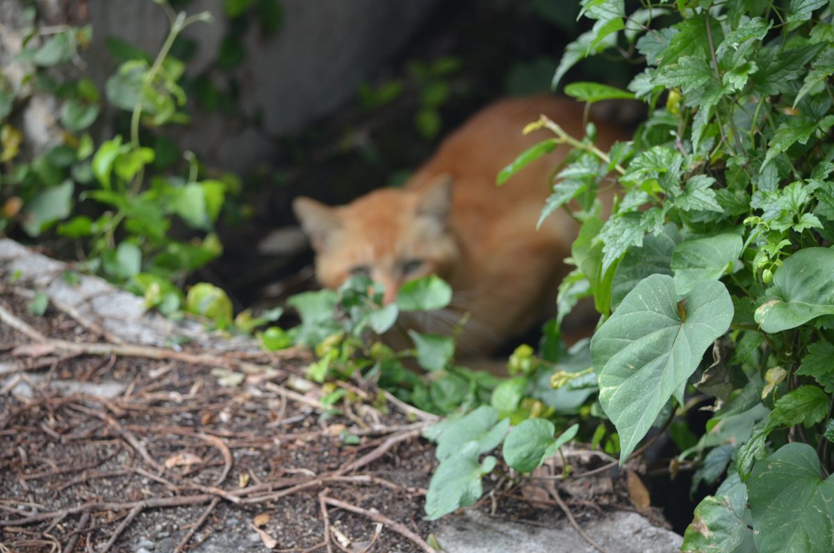 道路脇の排水路にて@南城市大里平良 2020/1/31 南城市 道路脇の排水路でかくれんぼでもしていたのでしょうか? 変な所におニャン子がいました。 少し近づくと、排水路からでて、門がある民家の中に逃げてゆきました。