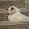民家の玄関先で、こちらの様子を気にしながらくつろいでいるおニャン子発見。 「ニャ~オ」と、挨拶しても無視された。