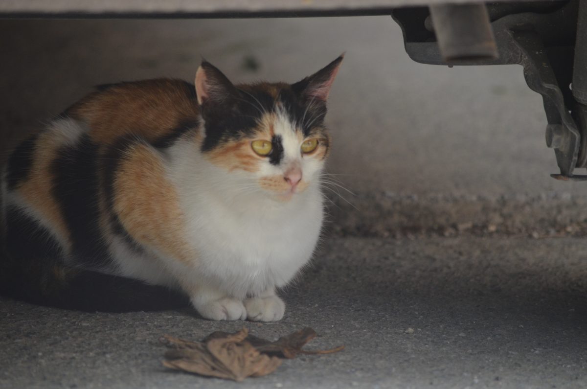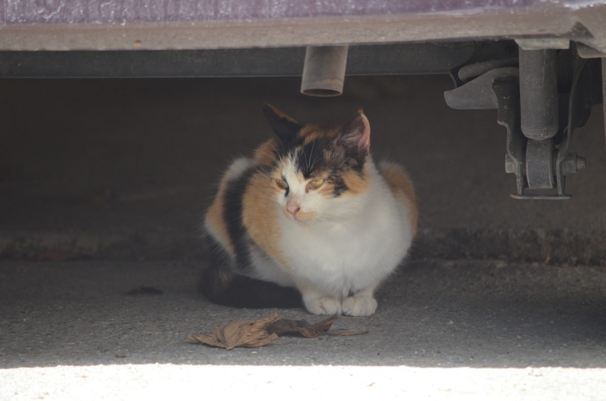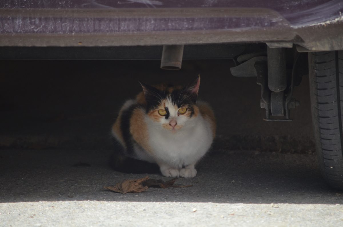 車の下でこちらの様子を伺うおニャン子@南城市玉城當山 2020/2/9 南城市 車の下でこちらの様子をみているおニャン子を発見。 「にゃ~お」と、挨拶しても、ちょっとこちらを見るだけで、気にしていない様子。