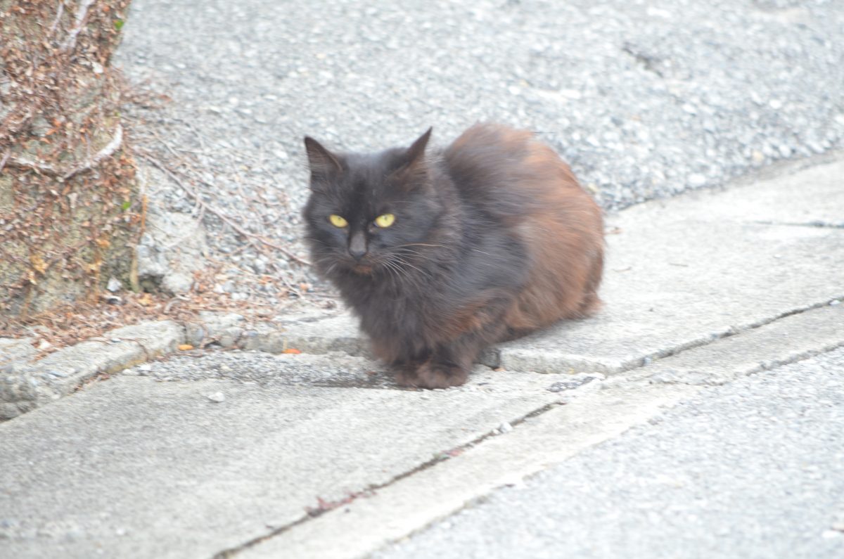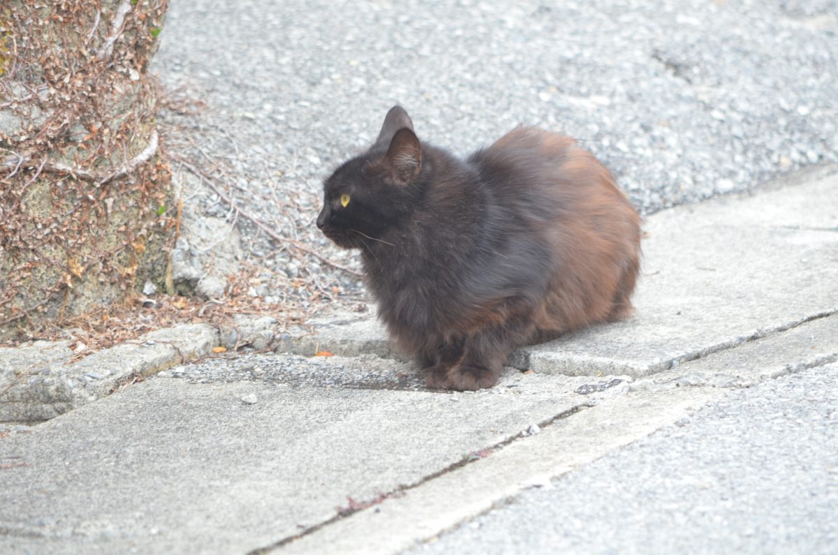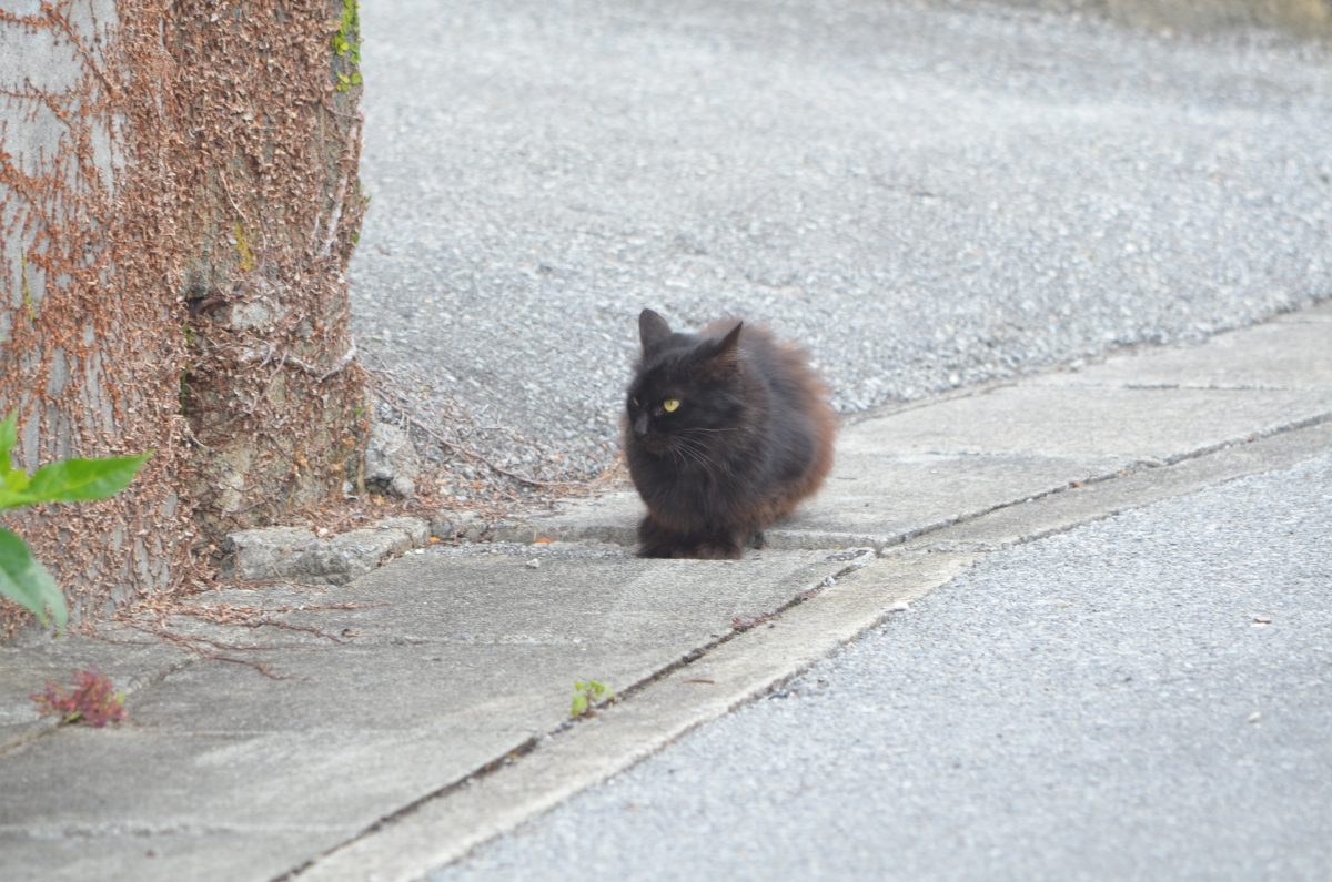 犬の鳴き声に驚いて逃げるおニャン子@八重瀬町宜次 2020/2/17 八重瀬町 八重瀬町宜次の集落内の小路を歩いていると、前方におニャン子発見。少し距離を置いたところで、カメラを取り出して撮影。 すこしずつ、近づいていくと、民家の犬が私を不審者と思ったのか、「ワオー」と、吠えだし、それに驚いたおニャン子もすたこらさっさと逃げ出してゆきました。