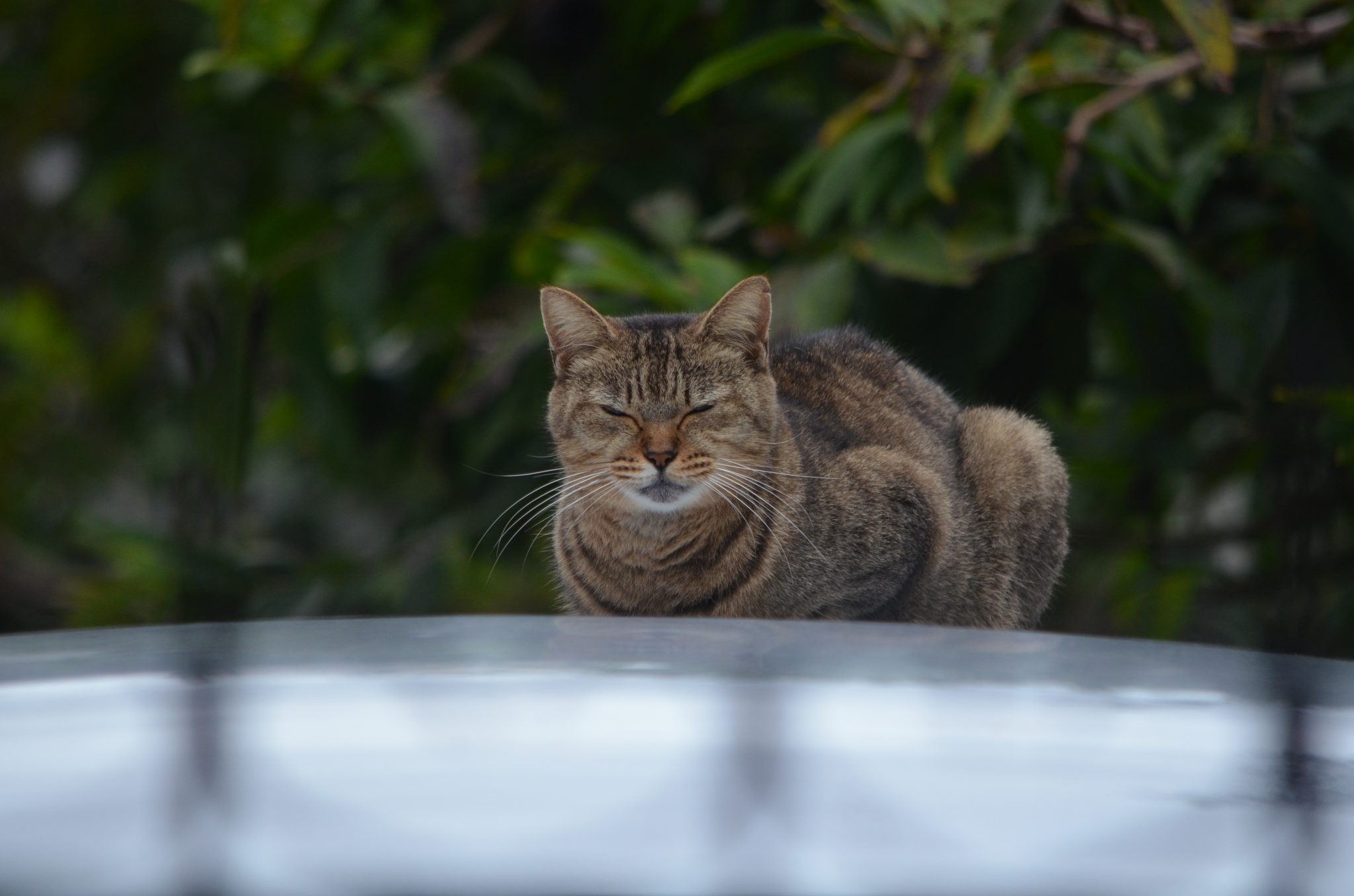 2017年12月18日びお昼に巡回したところ、少し肌寒く、日差しがないからか、車の上や、アルミ製の水タンクの上にいるおニャン子が、目撃したおニャン子4匹中3匹もいました。
