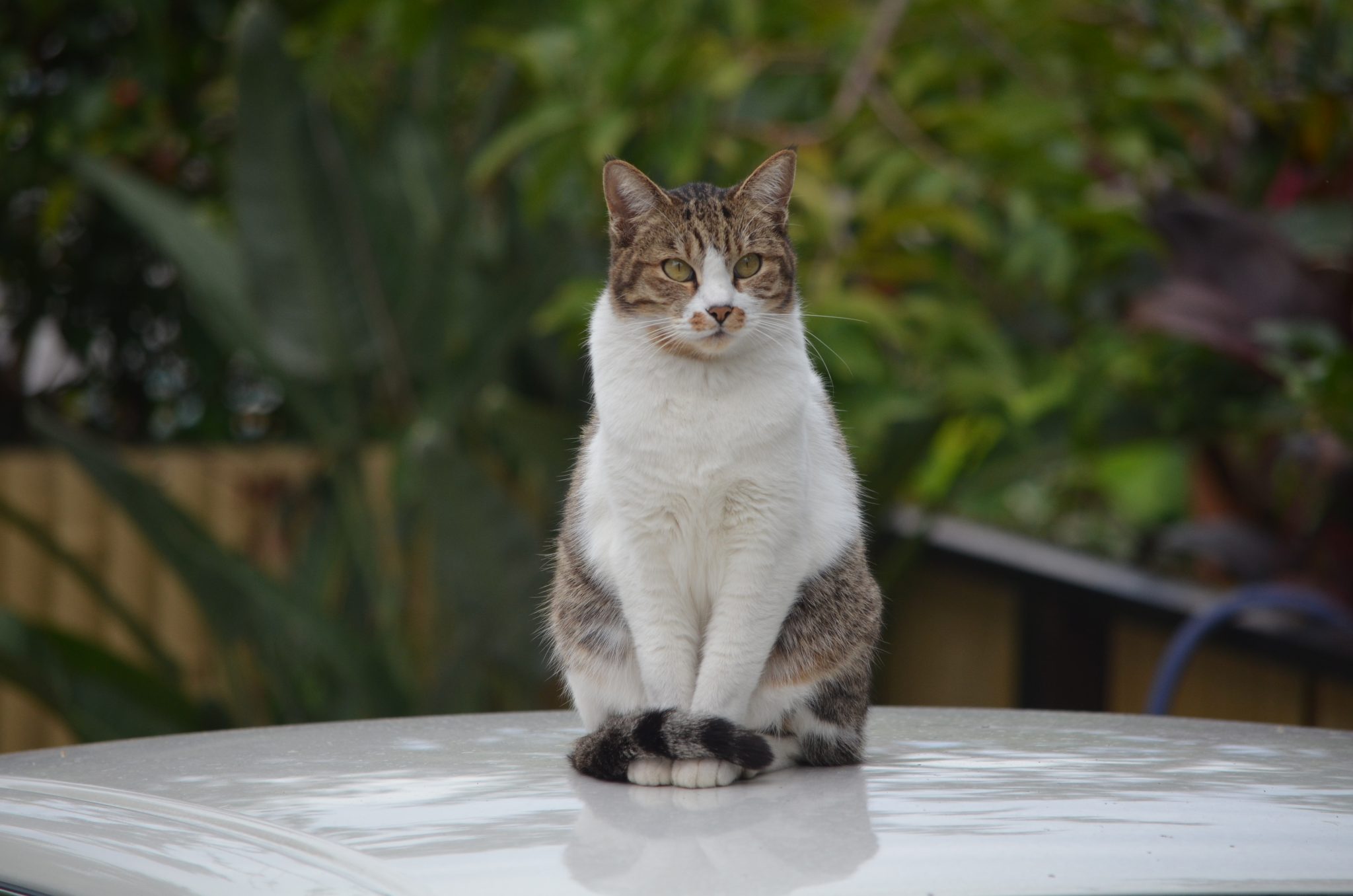 こちらは、車の上に座っている、全身がトラのおニャン子。