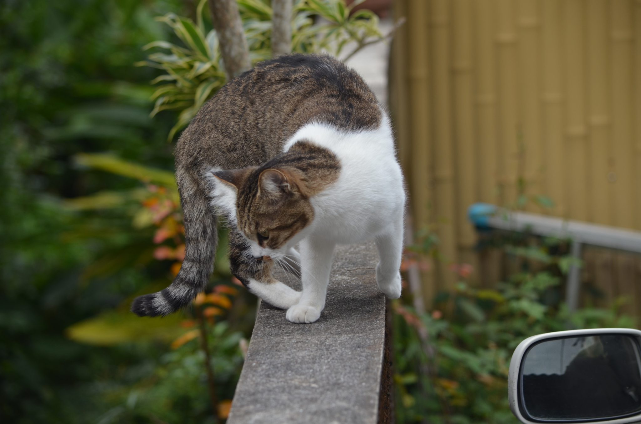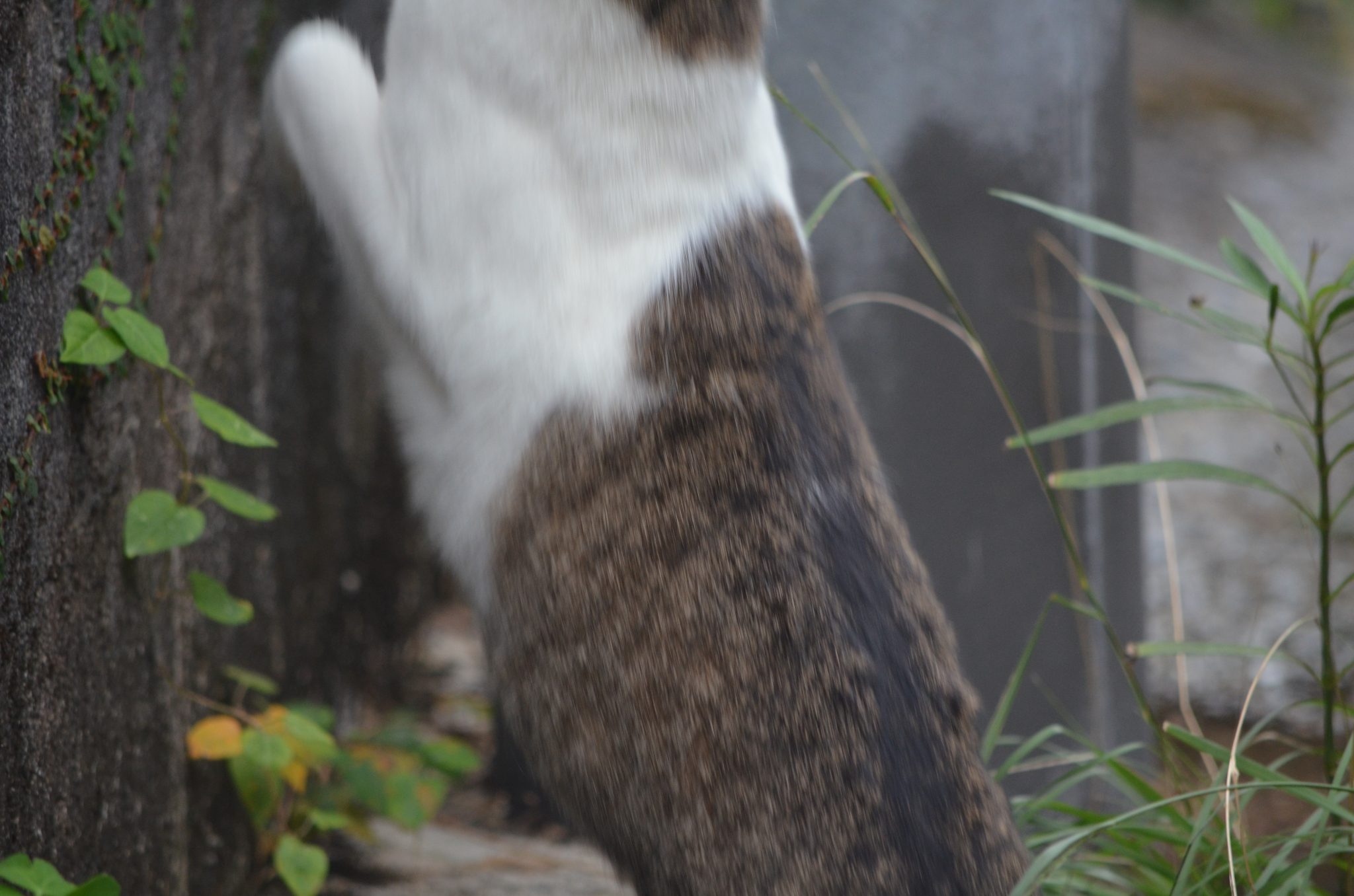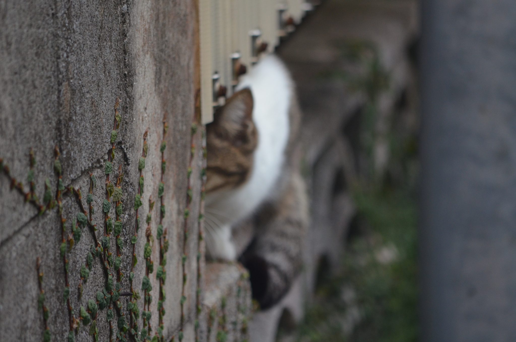 近づいてゆくと、塀の向こう側へ行ってしまいました。