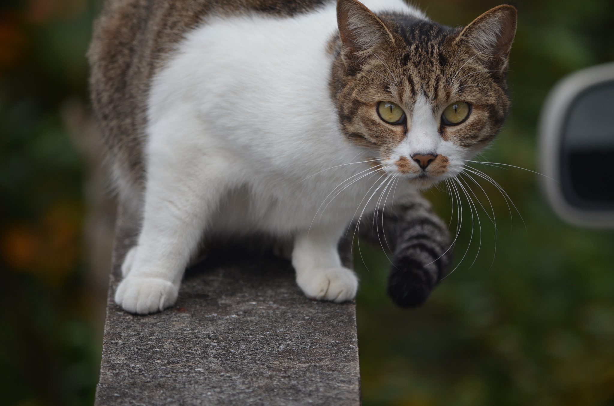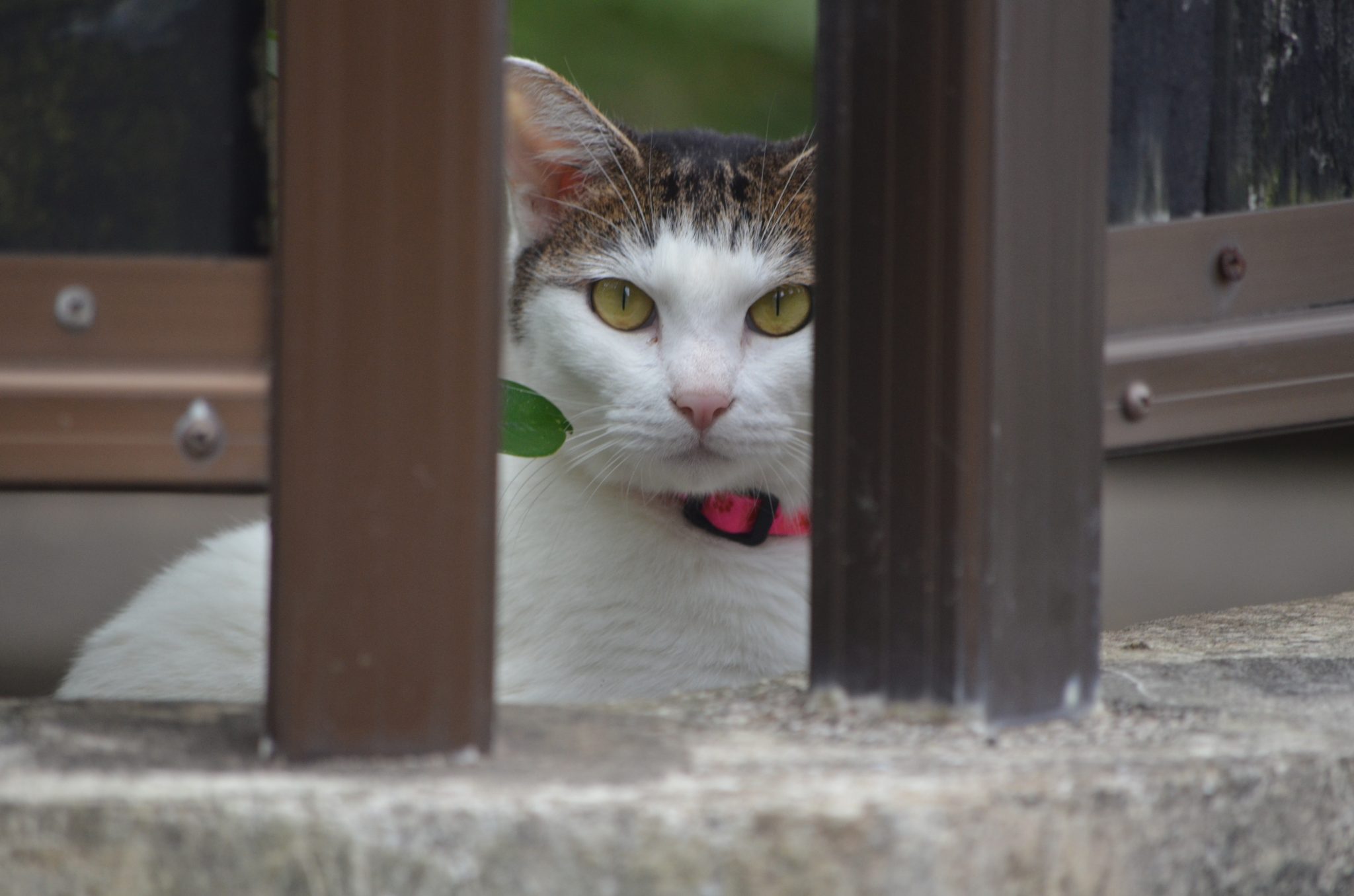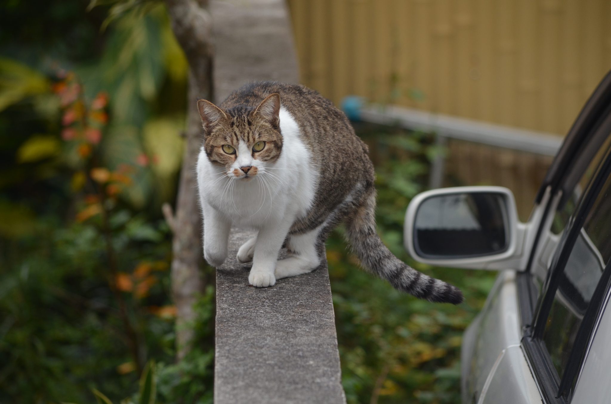 近づいてゆくと、塀の向こう側へ行ってしまいました。