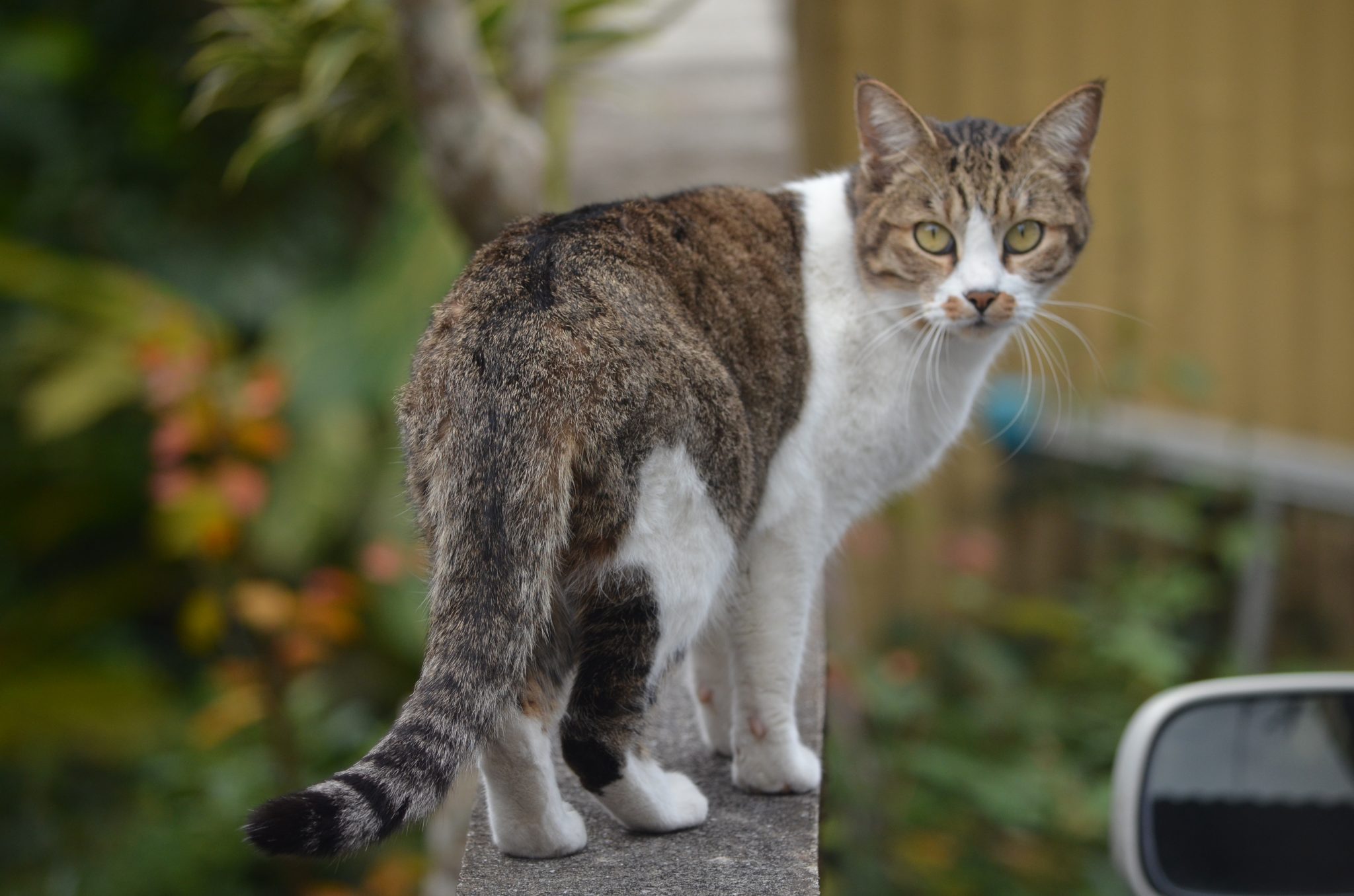 毛並みもよく、どっしりとして、飼い猫のようです。