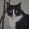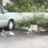 崎山ハイツ内のある民家の門柱の上で寝そべっているおニャン子を見つけました。