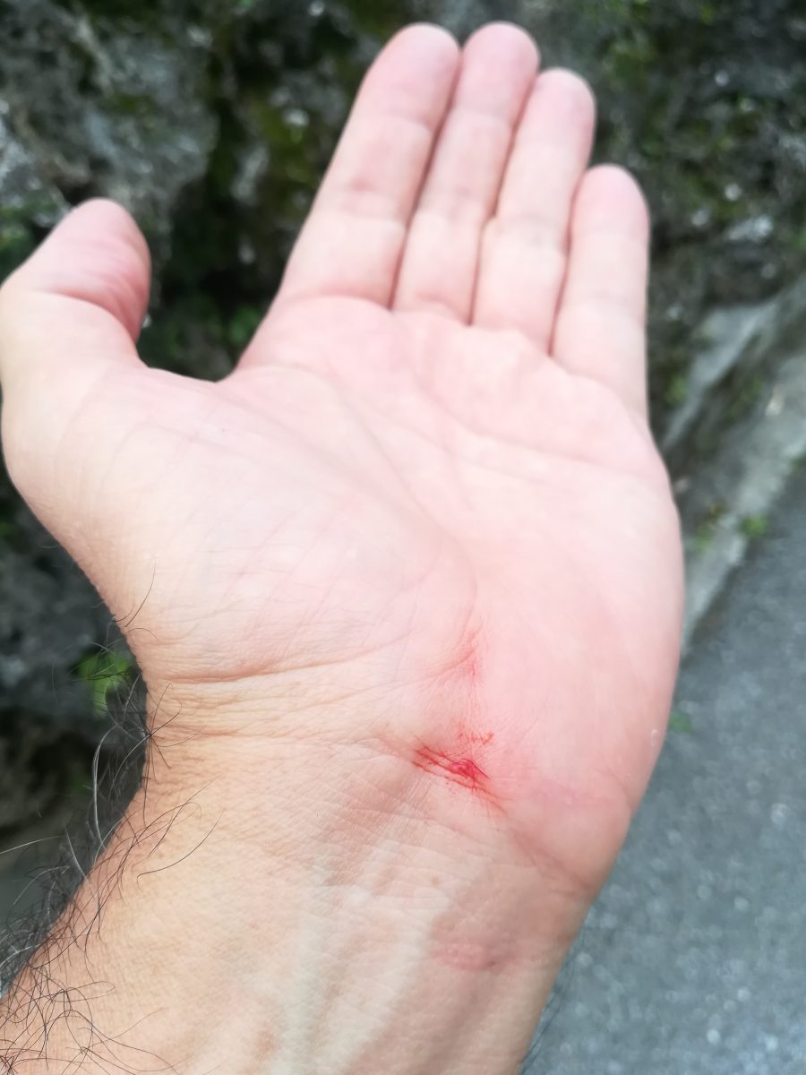 「おや?最近よく会うので、慣れてきたのかな?」と、思い。喉をナデナデしてあげようとした時、どうしたのか?急に、シャンシャンに引っかかれ、手首を噛まれてしまいました。