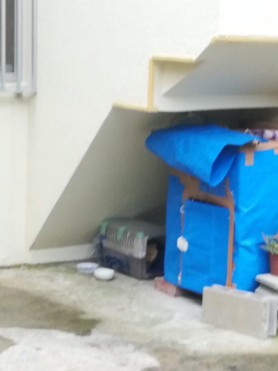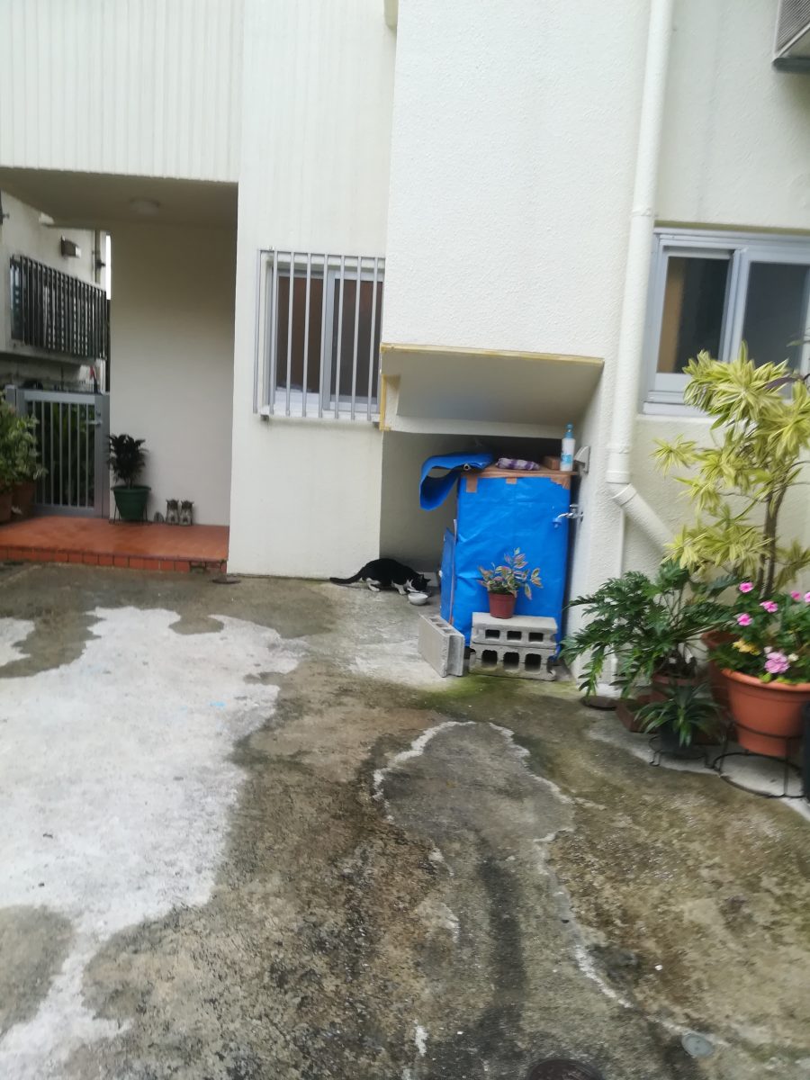パラパラと小雨も降るあいにくの天気、こんな日には、崎山ハイツのオナッy子たちも、どこか暖かなところでぬくぬくとしているのだろうと思って、ハイツの中を歩いていると…