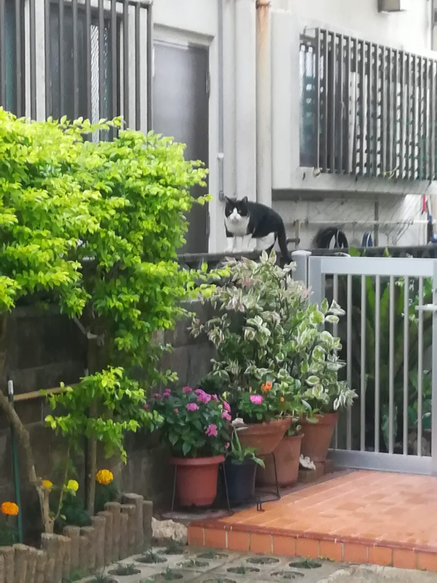 「ミャ~オ」と、声をかけると、びっくりしたようにすっ飛んで逃げてゆきました。