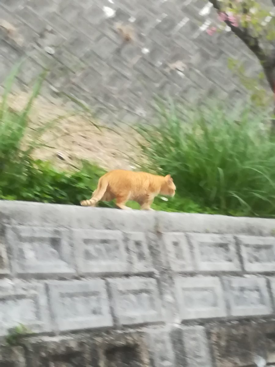 近づいてゆくと、土手の上をひたすら逃げてゆく茶トラ 2018/2/13 2018/3/1 崎山ハイツのおニャン子 早朝の崎山ハイツ、首里カトリック幼稚園の下の道を歩いていると、土手の上に茶色のトラを発見。 写真を撮影しようと、ゆっくり近づいてゆくと、こちらを警戒して、土手の上をどんどん遠くの方へ歩いてゆく。 さらに、追い詰めるように近寄ってゆくと、土手のウラの方へと、一目散に逃げてゆきました。 土手の上で茶色のトラを発見