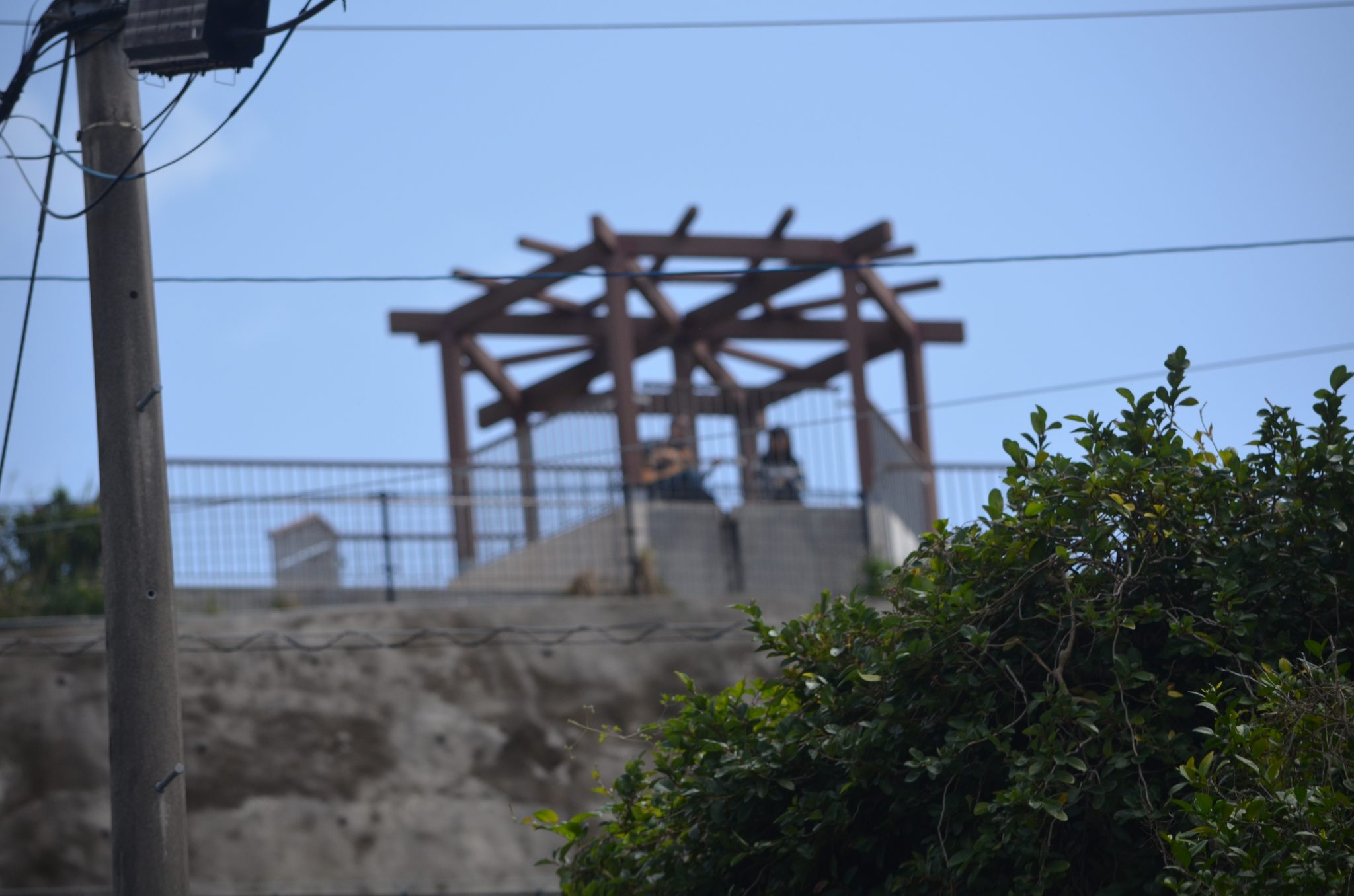 崎山ハイツに響く歌声 2018/3/7 2018/3/8 番外編 崎山ハイツの中をおニャン子を探して、ホイホイしていた3月初旬のお昼、みはらし館上の、見晴台で、ギターを片手に歌を唄う若者たちを発見。 春だね、青春だね。 写真は背面だけど、その後、ハイツの中をウロウロしたら、結構な音量で歌っていたようで、歌声がハイツ内を響いていました。 彼らの歌の中で唯一知っていたのは、リンダ~リンダ~ というサビの歌でした。 歌を唄う若者 見晴館前の急坂から望む