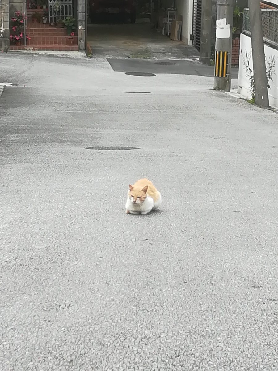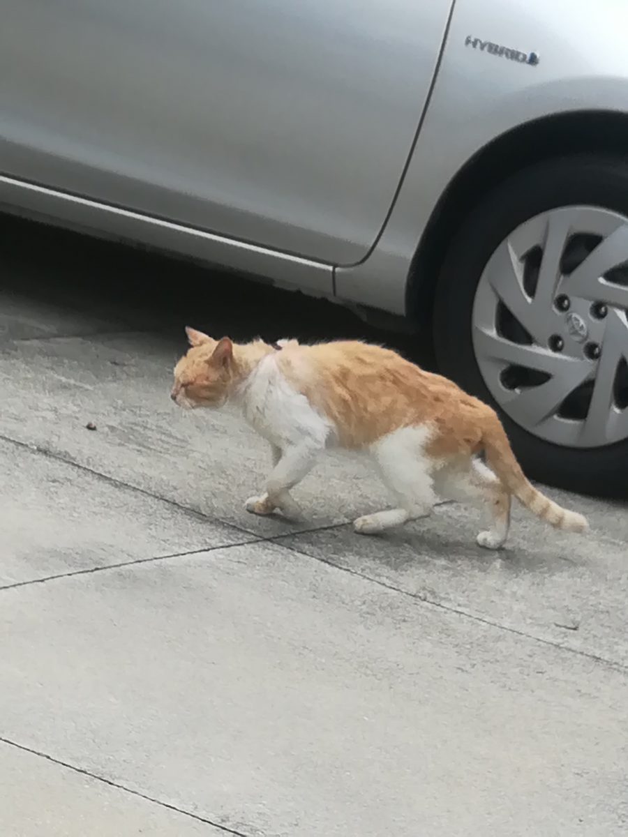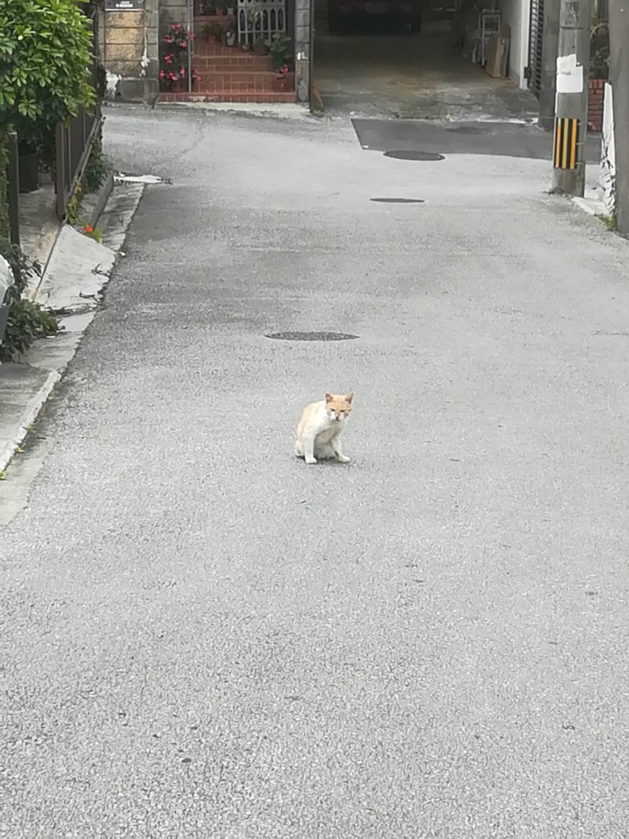 崎山ハイツ外れに近いところで、これまで、入ったことのない路地を散歩していると、怪我をしている茶色のおニャン子に遭遇しました。