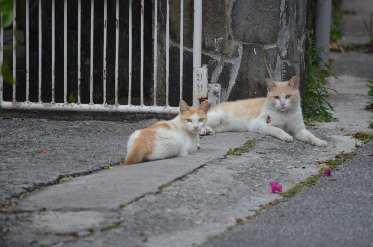 玄関先にくつろいでいた二匹に近づいてゆくと、こちらも最接近、5m程で奥の方へと移動してゆきました。