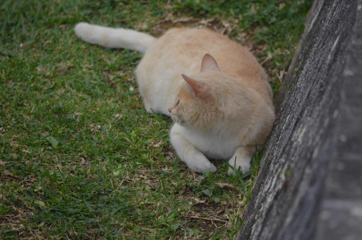 崎山公園にいる人馴れしたおニャン子 2018/4/14 2018/4/16 崎山ハイツのおニャン子 崎山公園の見晴台付近で、茶色のトラ毛猫を見つけました。 「ニャ~オ」と、挨拶すると、こちらの方によってきます。 子どもたちが、「わぁ~、猫ちゃんだ!」と、ナデナデしていました。 かなり人馴れしているようです。 このおニャン子、公園に来ていた他の人にも、おねだりをしていました。