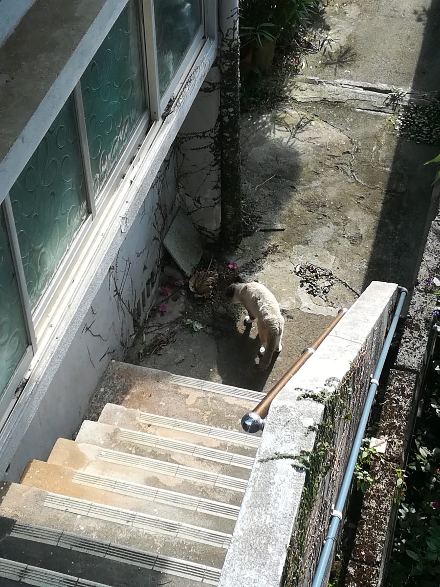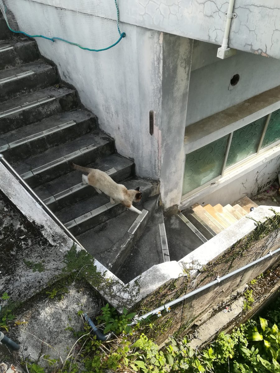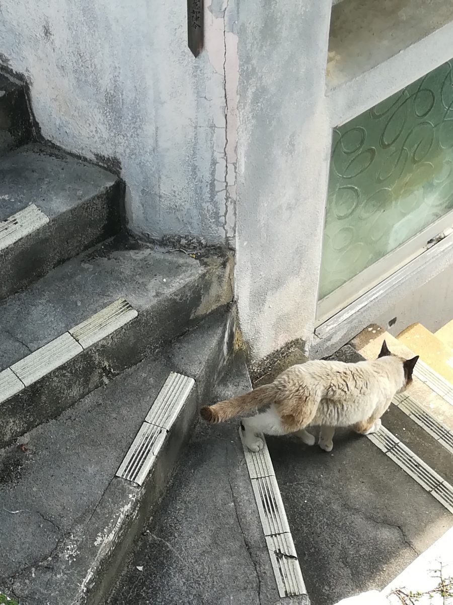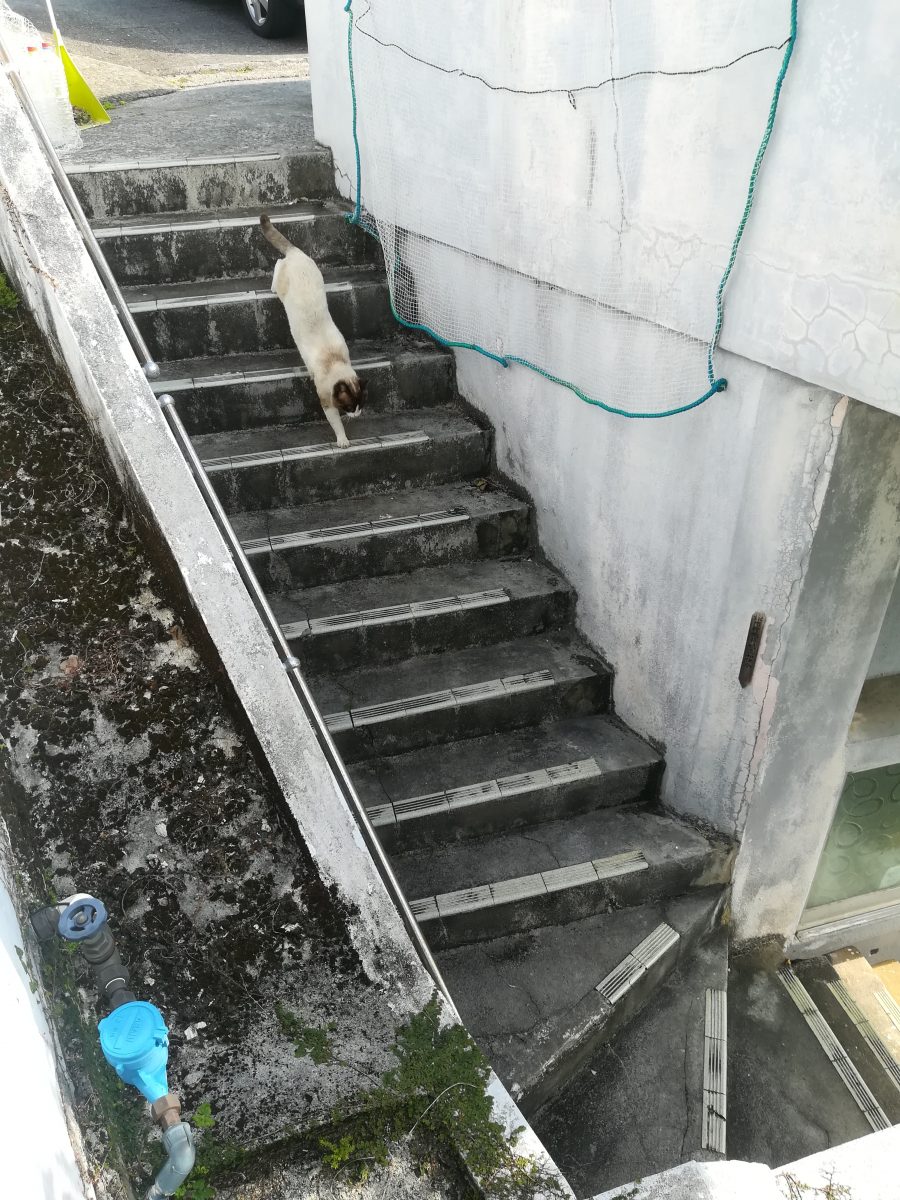 玄関へ続く階段を降りるシャンシャン 2018/4/30 2018/7/14 崎山ハイツのおニャン子 崎山ハイツのUさん宅玄関に続く階段を降りてゆくシャンシャンに遭遇しました。 玄関になにかあるのでしょうか?