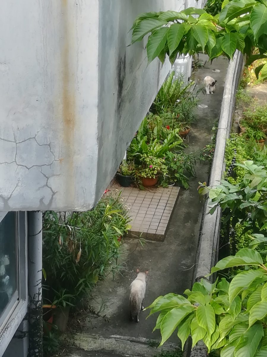 シャンシャンとは異なるおニャン子がUさん宅玄関へ 2018/5/5 2018/7/14 崎山ハイツのおニャン子 2日前に、シャンシャンが階段を降りているところを目撃した場所で、今度は別のおニャン子がうろうろ。 この玄関になにかあるのだろうか?