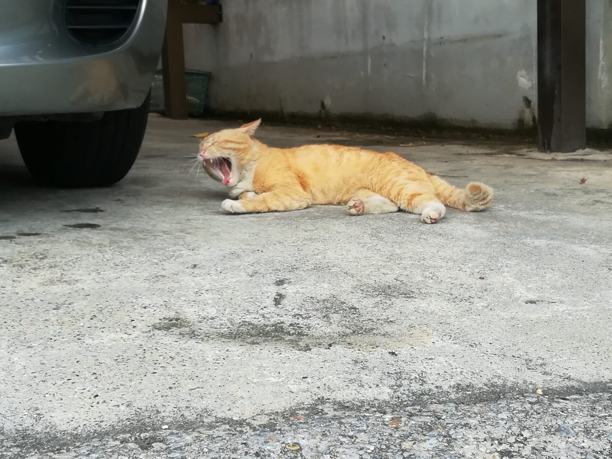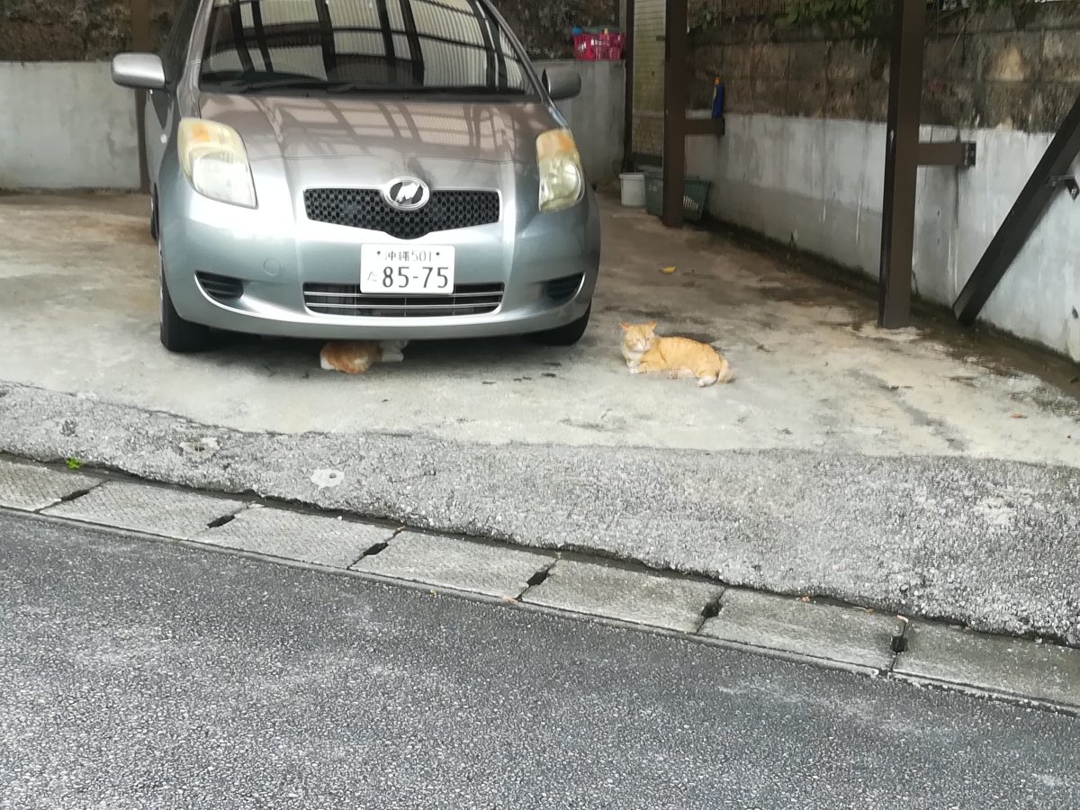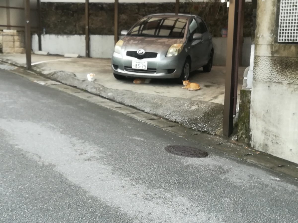 あくびをするおニャン子 2018/5/8 2018/7/14 崎山ハイツのおニャン子 3日前に、灰色のボス猫風のおニャン子を見た駐車場で、今日は、茶色系のおニャン子3匹を目撃しました。 近づいてゆくと2匹は車の下に隠れてしまいましたが、人馴れしている、こちらも、ちょっとボス風の茶系のおニャン子は、あくびをする余裕でした。 この3匹、いったいどういう関係なのでしょうか?